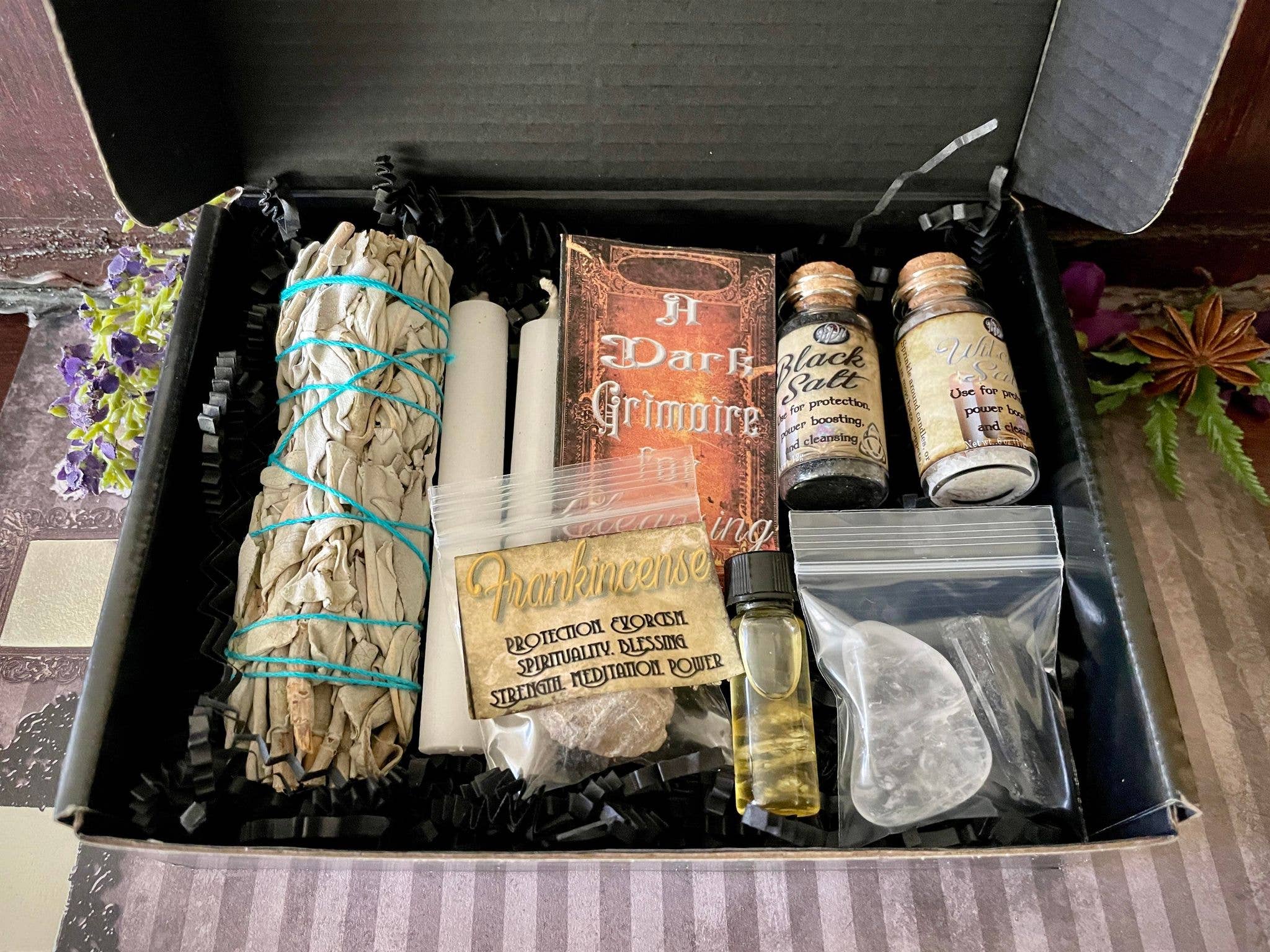 À la boutique Black Dahlia, nous embrassons l'attrait du côté obscur et son lien profond avec la vie, la beauté et la magie. Nous pensons que la véritable illumination nécessite d'explorer nos ombres et les endroits inconfortables à côté de la lumière. Notre mission est d'aider à manifester la beauté dans tous les aspects de la vie. Tous nos produits sont naturels, végétaliens et sans cruauté envers les animaux, évitant délibérément les produits chimiques nocifs et les ingrédients d'origine animale. En tant que boutique métaphysique et de décoration sur le thème de l'horreur gothique, nous accueillons tous ceux qui exploitent leur pouvoir personnel. Communauté : Notre boutique est fièrement détenue et exploitée par une sorcière de couleur LGBT, son partenaire sexy qui est vétérinaire de combat et protecteur, et certains de leurs enfants. Nous sommes des personnes qui trouveraient leur place partout si le monde n'était pas plein de peur en ce moment. Nous sommes donc également des activistes qui contribuent à créer un monde meilleur.