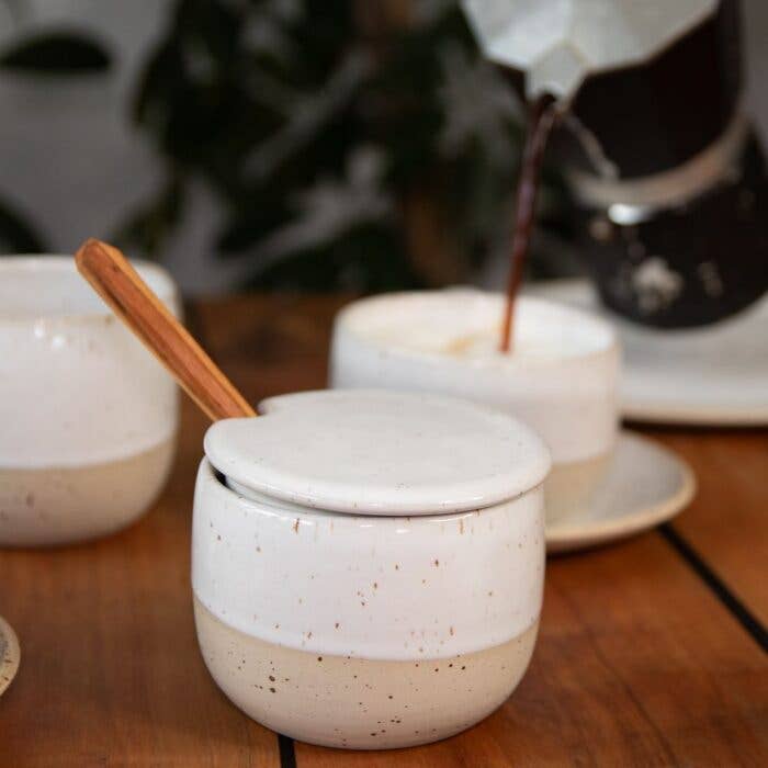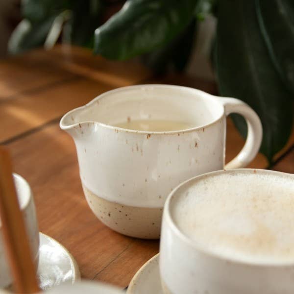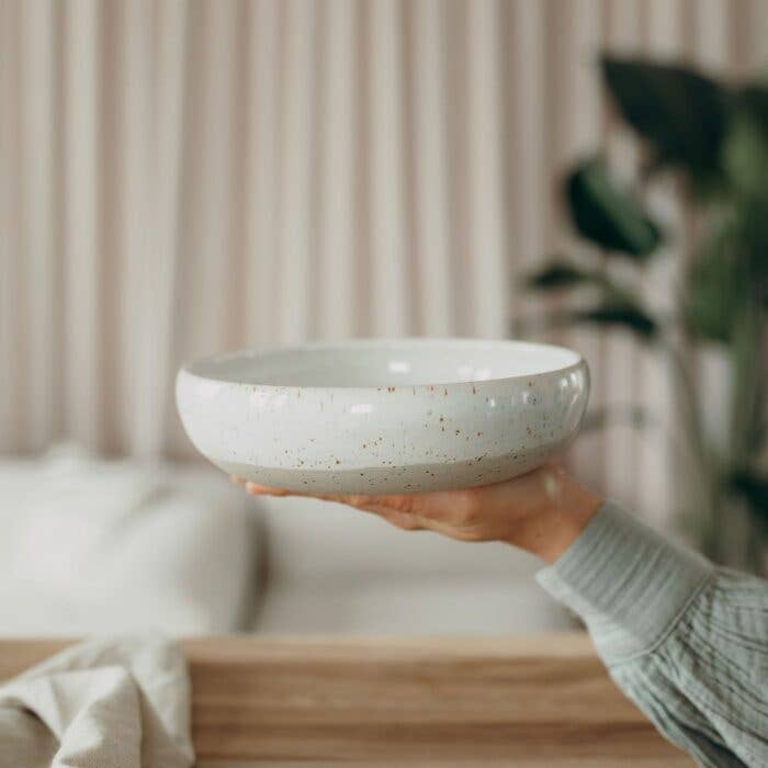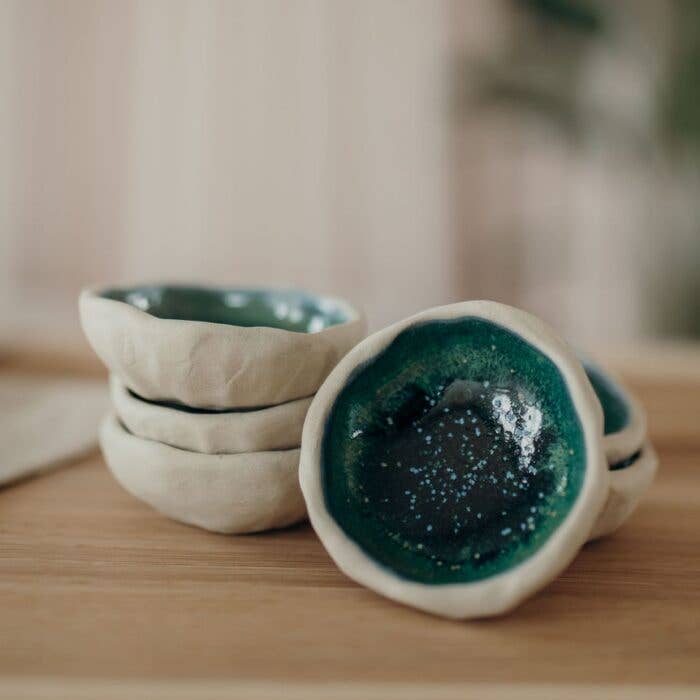 Céramique artisanale de la Forêt-Noire : Nous fabriquons de la céramique qui invite à célébrer consciemment le quotidien. Chaque tasse, chaque bol et chaque assiette est façonné individuellement à la main sur le tour de potier, ce qui leur confère un caractère unique. Nous attachons une grande importance à la qualité de fabrication, afin que notre vaisselle soit durable, stable et adaptée à un usage quotidien (lave-vaisselle et micro-ondes). Nos pièces présentent des traces de tournage visibles et des dégradés de couleurs uniques. Nos émaux sont exclusifs, car nous les avons développés nous-mêmes. Toutes les matières premières utilisées sont véganes et l'argile utilisée provient d'Allemagne.