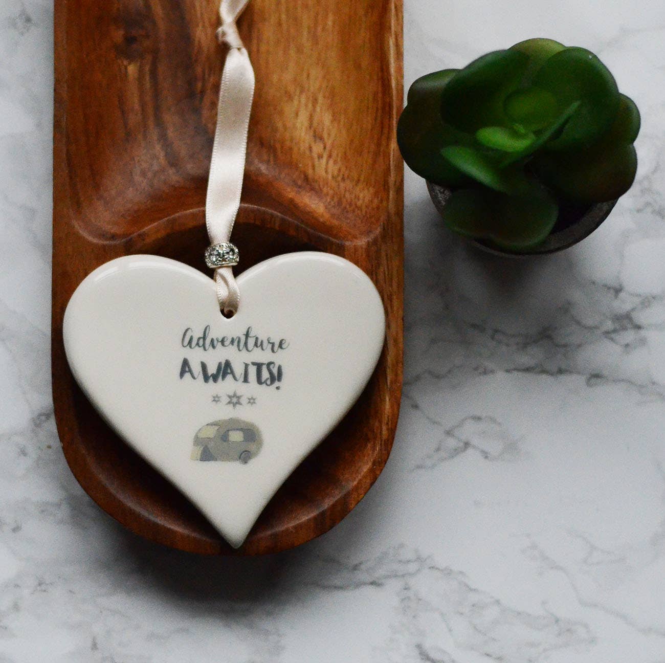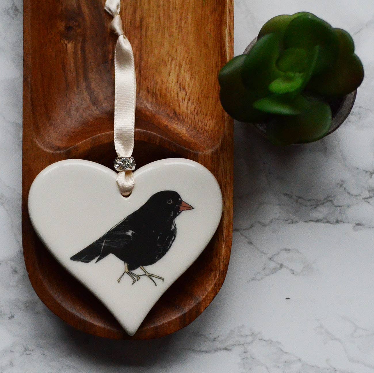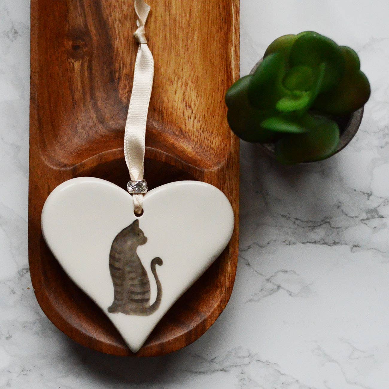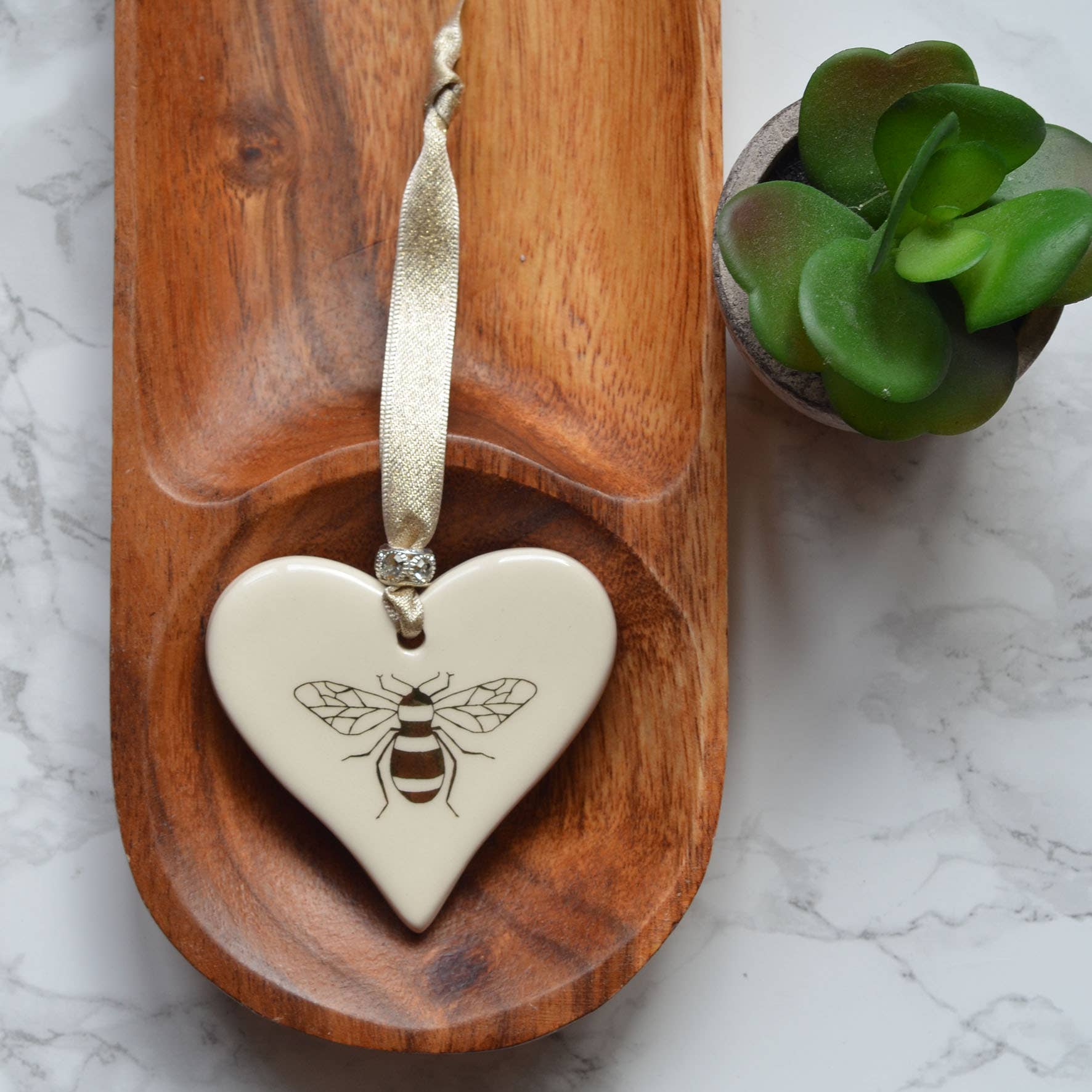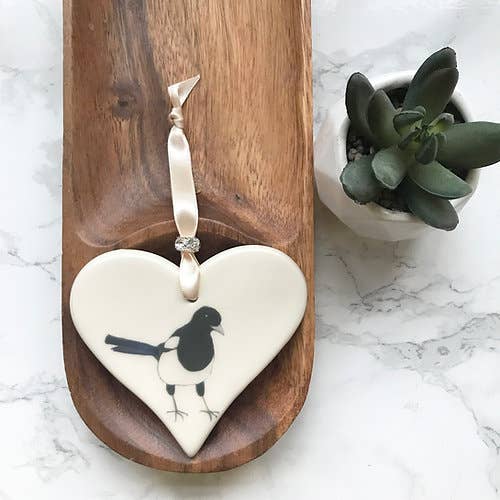 Mathew et Rachel Dimbleby sont inspirés par leur passion pour le design et la peinture en céramique. Ayant tous deux grandi à Stoke-on-Trent, dans le Staffordshire, avec son riche héritage de fabrication de céramiques de haute qualité, la philosophie de l'entreprise était claire dès le début : créer des produits de haute qualité qui peuvent être appréciés n'importe où dans la maison. Ils ont combiné leurs talents et leurs connaissances pour concevoir et fabriquer des cadeaux en céramique uniques qui présentent les illustrations à l'aquarelle de Rachel Dimbleby. Ces magnifiques illustrations sont inspirées par les animaux des amis et de la famille, ainsi que par la faune du bois à l'arrière de l'atelier du couple, chaque pièce ayant une histoire à raconter. Outre les gammes animaux et animaux sauvages, Dimbleby Ceramics produit une gamme de tentures décoratives avec des mots ou des images. Chaque pièce est ornée d'un ruban et d'une breloque. Ils ont vraiment un cadeau pour toutes les occasions, y compris les mariages, les anniversaires et l'arrivée d'un nouveau bébé. Tous les cœurs suspendus et les dessous de verre sont fabriqués à la main à Stoke-on-Trent en utilisant des matériaux d'origine locale et chaque produit est fièrement créé en utilisant des techniques traditionnelles et des compétences artisanales. Les tasses et les boules de Noël sont conçues et décorées à la main à Stoke-on-Trent