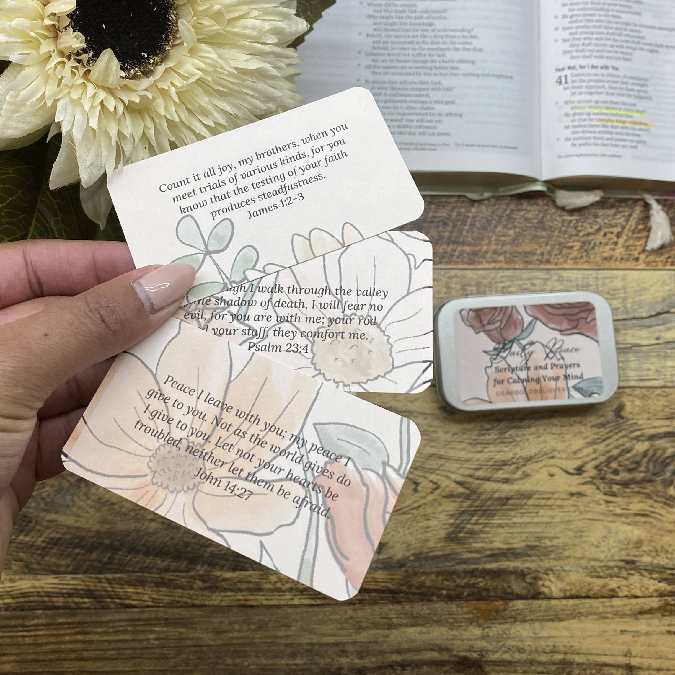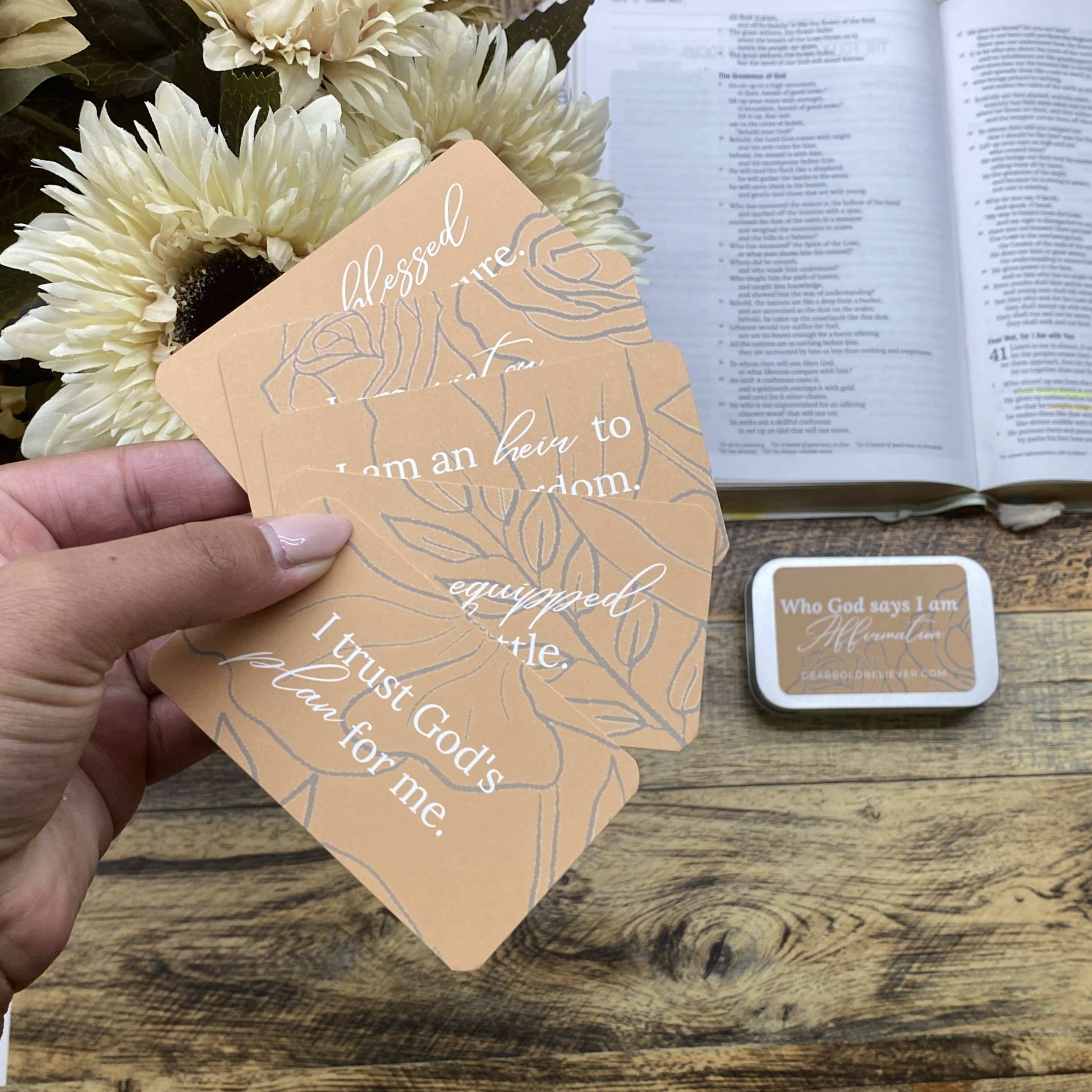 Des prières chuchotées à une foi audacieuse ! Tout a commencé par un murmure. Pas du genre nerveux, mais alimenté par l'amour et l'inquiétude. Une prière, écrite pour un ami qui luttait dans l'obscurité, est devenue une bouée de sauvetage, une lueur d'espoir partagée, pas simplement prononcée. Le Saint-Esprit, cependant, avait une voix plus forte. Cela a fait écho aux angoisses liées à une pandémie, à la peur d'un fils à naître et à l'attrait indéniable pour un lien plus profond avec Dieu. Dear Bold Believer n'est pas né d'un plan d'affaires, mais d'un parcours personnel. Chaque produit, qu'il s'agisse de cartes d'affirmation ou de journaux d'étude de la Bible, reflète le parcours d'une mère, d'une épouse et d'une employée à plein temps qui trouvent des moments dans le chaos pour créer une beauté inspirée par sa foi. Il ne s'agissait pas simplement d'articles de papeterie ; il s'agissait de rappels tangibles, de chuchotements de vérité contre les angoisses du monde.