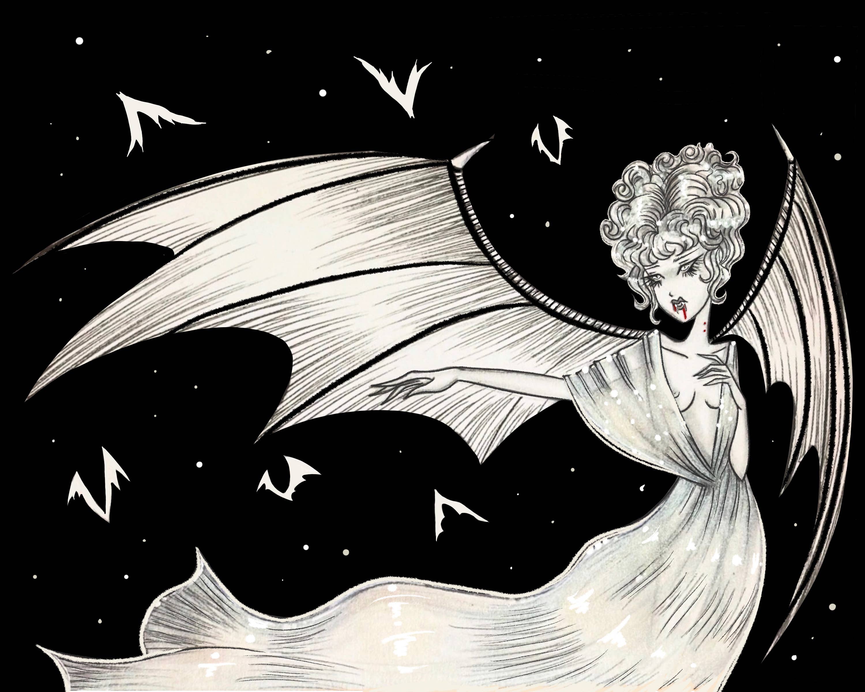 Stefani Rabideaux est une artiste sombre basée à Orlando, FL. Elle combine des éléments de Glam Goth et de Dark Nouveau, invoquant des femmes puissantes en des temps sombres. Ses illustrations gothiques, inspirées du vintage, prennent vie grâce au crayon graphite, au lavis de graphite et à la gouache riche, ainsi qu'à des créations numériques via Procreate. Son travail est fortement inspiré par la musique, l'Art Déco, les pin-ups classiques et une touche subtile de la culture pop japonaise. Son travail a été exposé dans des galeries du monde entier et elle a eu trois expositions personnelles à la Stranger Factory Gallery. Stefani a créé des peintures pour la Wonderground Co-Op Gallery de Disney à Disney World et Disney Land. Elle s'épanouit en tant qu'artiste à plein temps avec son mari Creeptoons à Orlando, FL et parcourt les États-Unis pour vendre ses œuvres, offrant à son public la chance de découvrir son art de près et personnellement.