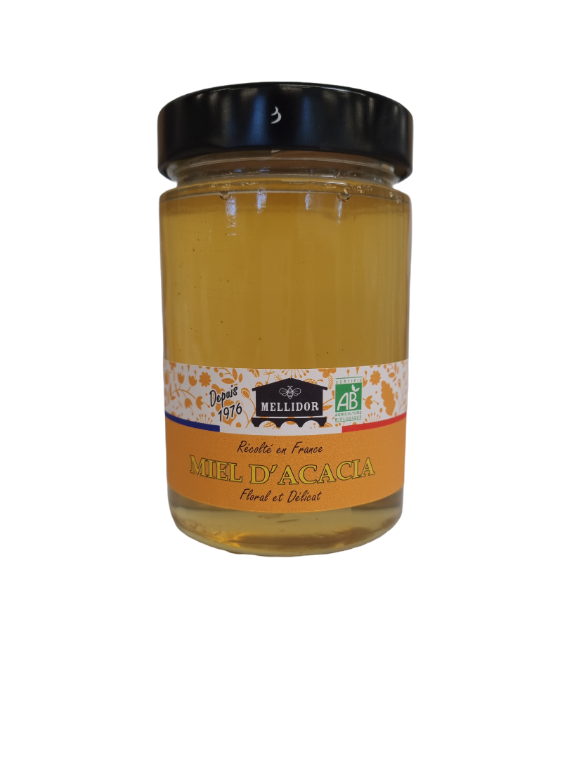 Créée en 1976 par un couple d’apiculteurs avignonnais, la société Mellidor, située au cœur de la Provence, est une petite structure locale et familiale d’Avignon, spécialisée dans les produits de la Ruche issus de l’Agriculture Biologique. Depuis bientôt 50 ans, nous travaillons en direct avec les apiculteurs de la région afin de proposer à nos clients une gamme aussi complète que variée. Notre activité est 100% artisanale. Tout se fait manuellement, sans chaine de conditionnement. Les 3 salariés de l’entreprise sont polyvalents et accordent un soin particulier aux miels lors du conditionnement. La non-disponibilité en France de certaines variétés et la consommation de miel en France étant deux fois supérieure à ce que nos abeilles produisent, nous nous permettons de vous faire découvrir des variétés d’exceptions (miels d’agrumes, miel tropicaux) et d’autres plus classiques avec les mêmes exigences qualitatives que pour nos miels français (analyse systématique par laboratoire indépendant). Mellidor c’est 90% de partenaires locaux et régionaux. En tant qu’acteur de la filière BIO depuis plus de 20 ans, nous nous sommes développés dans un souci de respect de la nature et de l’environnement. En tant qu’entreprise responsable nous privilégions les partenaires locaux et nous agissons chaque jour dans l’optique de réduire notre impact sur l’environnement.