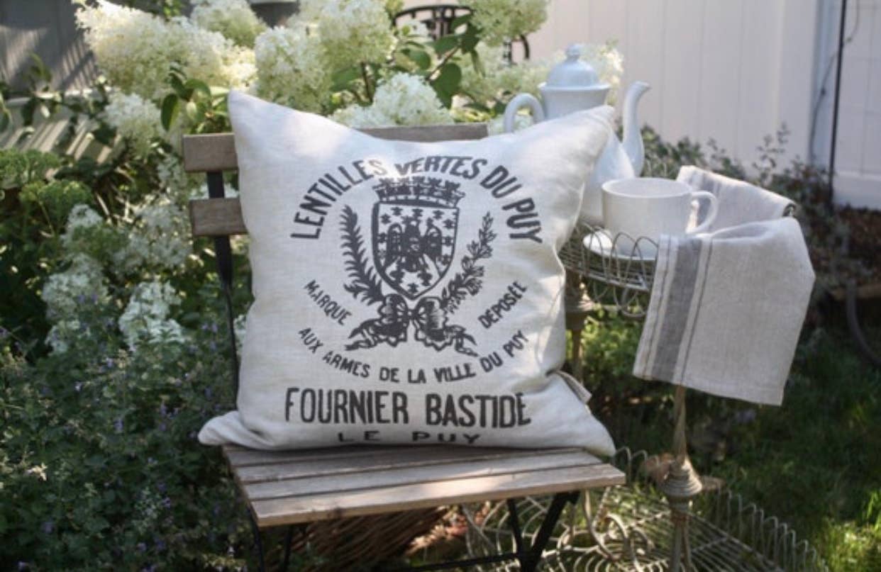 Nos coussins « Authentic Original » sont tous fabriqués avec des matériaux anciens et récupérés : draps slubby, métis croustillants, sacs à grains anciens et sacs de messagerie provenant de brocantes, sous-sols, ventes immobilières et revendeurs dans toute la France, la Suisse et l'Allemagne. Chaque coussin est créé à la main et parce que les textiles sont rares, il n'y en a pas deux. Nos reproductions, bien qu'elles ne datent pas des années 1800, offrent encore une richesse de charme vintage. Les motifs, inspirés des pochoirs en goudron antique et des imprimés industriels utilisés dans toute l'Europe aux XIXe et XXe siècles, sont imprimés à la main sur des draps doux lavés et des textiles de sacs à grain pour votre clientèle exigeante.