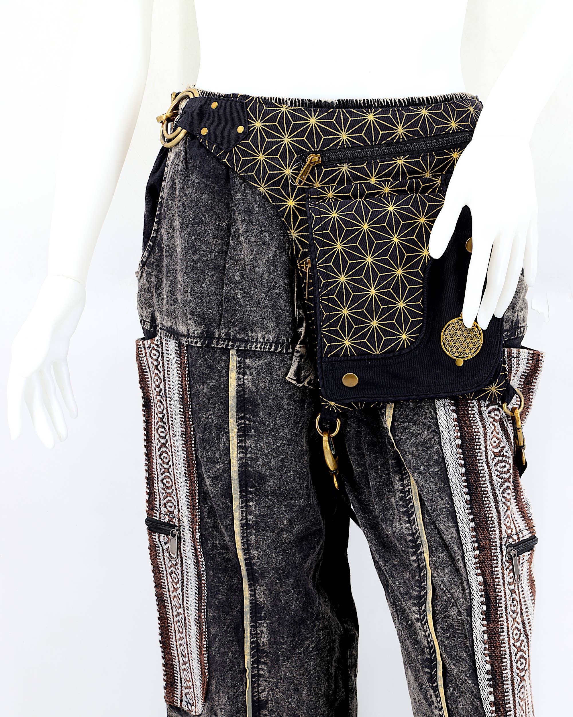 Chez Himalaya Handmade LLC, nous développons nos designs exclusifs, sculptures et fabrications depuis plus de 24 ans, à la fois pour la vente en gros et au détail. Depuis 2001, nous fournissons nos vêtements doux et chauds ainsi que de magnifiques articles d'artisanat à des clients satisfaits dans le monde entier. Nous sommes renommés dans le monde entier pour créer des vêtements contemporains qui encapsulent magnifiquement les traditions et l'art népalais, tout en incorporant des influences et des tendances occidentales. Nos produits se déclinent en une vaste gamme de designs et de couleurs. Ils présentent des motifs aztèques multicolores et sont fabriqués à partir de tissu en coton naturel tissé à la main, respectueux de l'environnement, et soigneusement confectionnés au Népal. Chaque article fait main est méticuleusement fabriqué à la main, reflétant le soin et l'attention apportés à leur création, ce qui se traduit par une qualité inégalée. Comme nos produits sont faits à la main, les couleurs et motifs des patchworks sur chaque paire de pantalons peuvent varier, rendant chacun unique. L'image fournie sert de représentation générale de l'apparence du produit.