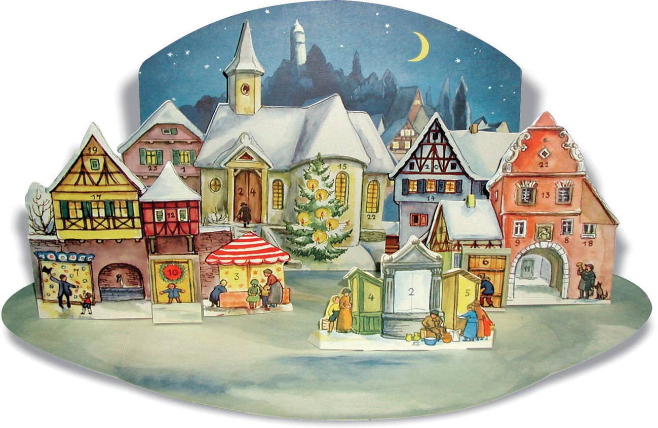 Les paysages urbains nostalgiques, les scènes de Noël chaleureuses, les paysages enneigés romantiques avec le Père Noël et les motifs religieux des calendriers de l'Avent, particulièrement appréciés en Angleterre, ont un point commun : ils sont conçus et fabriqués avec soin et souci du détail. Les autorités d'occupation américaines ont autorisé l'impression en 1945. Bien qu'une grande partie de la saison de l'Avent de la première année d'après-guerre soit déjà terminée, le calendrier de Sellmer a connu un grand succès. Il a donc progressivement élargi le programme au cours des années suivantes. Richard Sellmer a rapidement établi des contacts avec des clients américains par le biais de salons internationaux. Le calendrier de l'Avent, jusqu'alors totalement inconnu aux États-Unis, y a également trouvé des acheteurs enthousiastes. Les clients américains pouvaient désormais également acheter le calendrier de l'Avent de Sellmer. Sellmers Verlag a rapidement été surnommée « la maison du calendrier de l'Avent ». Les somptueux albums photos, qui retracent l'histoire de l'entreprise, contiennent des photos en noir et blanc des premières productions ainsi que des lettres d'enfants du monde entier adressées au « Secrétaire général du Père Noël » ou au « Père Noël ». Les calendriers de l'Avent Sellmer sont respectueux de l'environnement : carton recyclé sur la face avant, paillettes biodégradables, enveloppés dans un film recyclable.