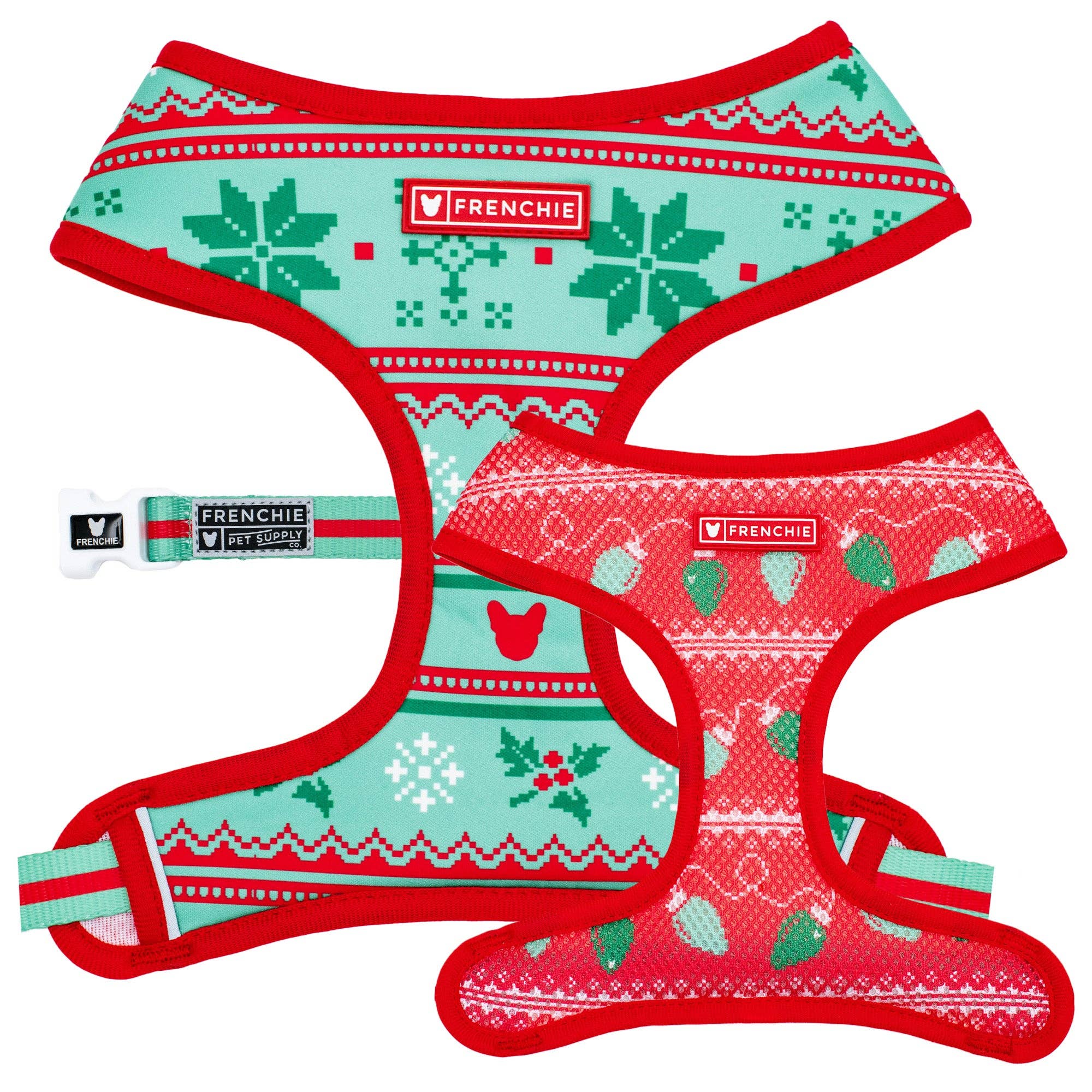 En tant que propriétaires de bouledogues français, nous savons de première main à quel point il peut être amusant d'accessoiriser votre frenchie avec un harnais, un collier ou une laisse amusants. Le problème, c'est que les harnais pour chiens ne semblent jamais parfaitement convenir aux bouledogues français. En plus d'un ajustement loin d'être parfait, vous êtes confronté à la même option de couleur jour après jour jusqu'à ce que vous achetiez un nouveau harnais. Entrez Frenchie ! Chez Frenchie, nous n'avons pris aucun de ces problèmes à la légère. Si vous tenez à votre Frenchie autant que nous, vous lui souhaitez également le plus de confort, de sécurité et de polyvalence des couleurs dans son harnais. C'est pourquoi nous nous sommes donné pour mission personnelle d'offrir aux propriétaires de bouledogues français le tout premier harnais réversible le mieux ajusté du marché ! Outre nos harnais réversibles spécialisés pour chiens Frenchie Bulldog, nous proposons également une sélection colorée de colliers et de laisses imprimés pour votre bouledogue français. Bien que nos harnais soient conçus sur mesure pour les bouledogues français, ils conviennent également à d'autres petites races telles que les carlins, les Boston Terriers et bien d'autres.