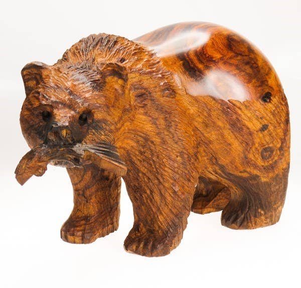 La sculpture sur bois de fer est une forme d'art unique du désert de Sonora, au sud de l'Arizona et au nord du Mexique. Il a été fabriqué à la main à partir de bois de fer du désert, un bois très dense et lourd d'origine intrigante. Pour être adapté à la sculpture, le bois doit être exposé aux conditions climatiques extrêmes qui n'existent que dans le désert. Après des années d'exposition dans cet environnement chaud et sec, les résines naturelles s'accumulent, se condensent et durcissent, transformant ainsi le bois en bois de fer très dense et lourd. Le gouvernement a interdit la récolte d'arbres Ironwood vivants, obligeant les artisans à rechercher intensivement les arbres tombés naturellement. Aucun bois vert ne convient ou n'est utilisé pour la sculpture. La sculpture sur bois de fer est une forme d'art particulièrement exigeante créée par les Indiens Seri, une petite tribu qui habite dans le grand désert de Sonora depuis des milliers d'années. Une fois le bois ramassé, chaque pièce est fabriquée à la main à l'aide d'outils très simples. Il nécessite de longues heures de sculpture, de ponçage et de polissage à la main, ainsi qu'un « œil » artistique pour capturer efficacement la belle loupe et le grain distinctif inhérents au bois de fer. Le résultat de ce travail manuel est qu'il n'y a pas deux pièces identiques. L'offre de bois de fer véritable est limitée et le nombre de sculpteurs diminue.
