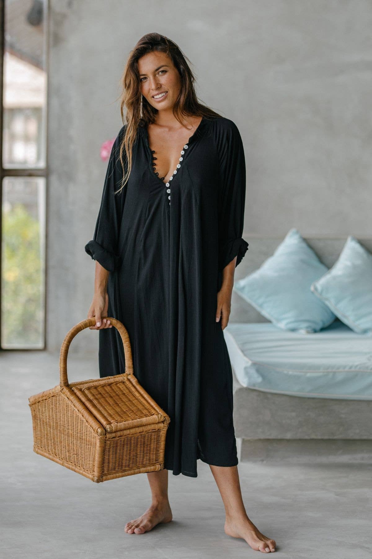 Cette collection parle d'un amour sauvage et sans attache de l'expression avec l'intention d'être au service, d'élever, de se détendre, de communier et d'embrasser votre plus haute vocation. Pour Rob, moi et beaucoup de nos employés, la vocation la plus importante est d'être parent. C'est pourquoi toute notre équipe travaille à domicile. Au lieu d'ouvrir une usine ou de travailler avec des installations existantes, nous avons mis en place une production décentralisée dirigée par une équipe majoritairement féminine travaillant toutes à domicile. De cette façon, tout le monde peut passer plus de temps avec sa famille. Nous croyons qu'augmenter la joie de vivre de notre équipe augmente l'amour et l'intention que nous mettons dans chaque pièce que nous fabriquons à la main à Bali.