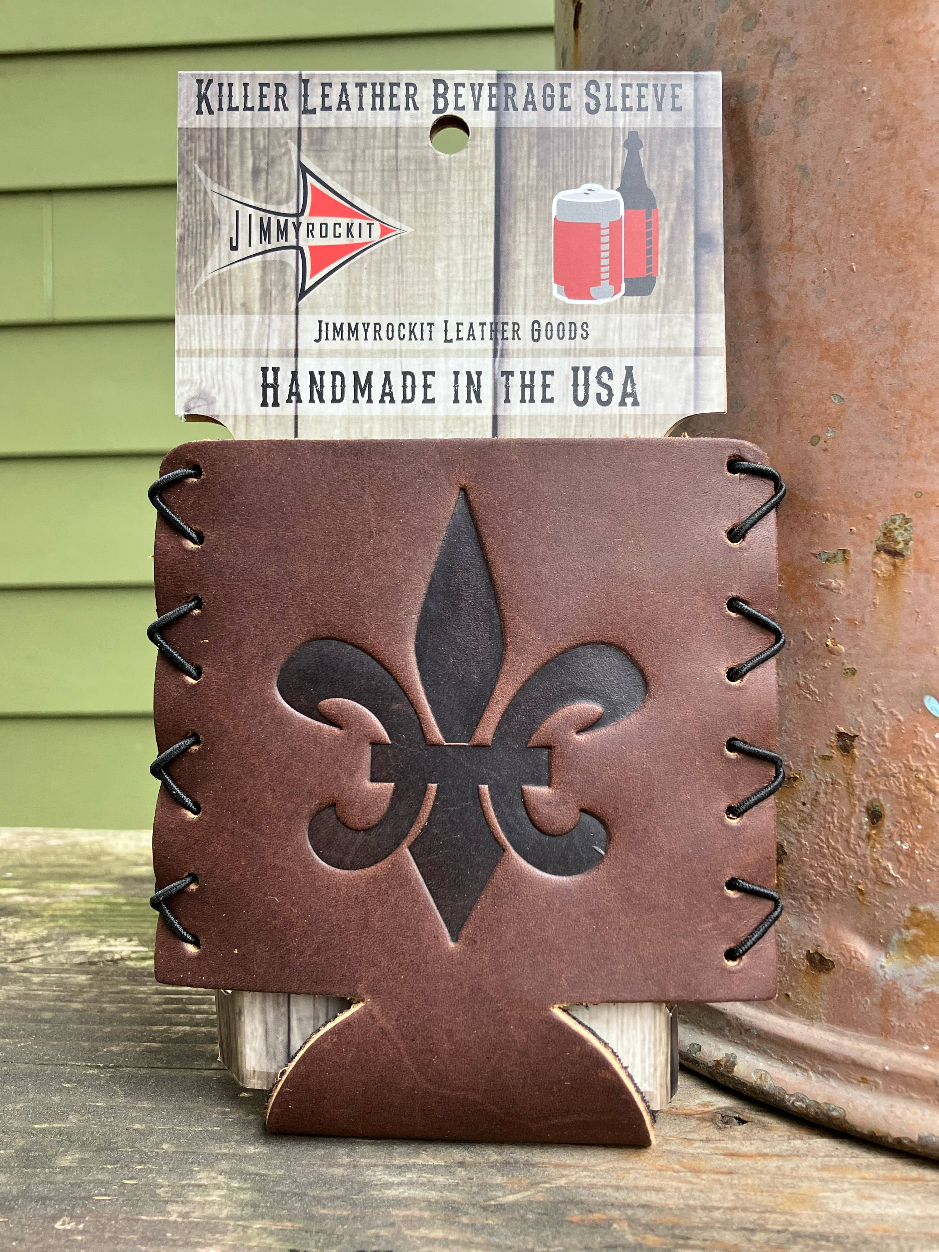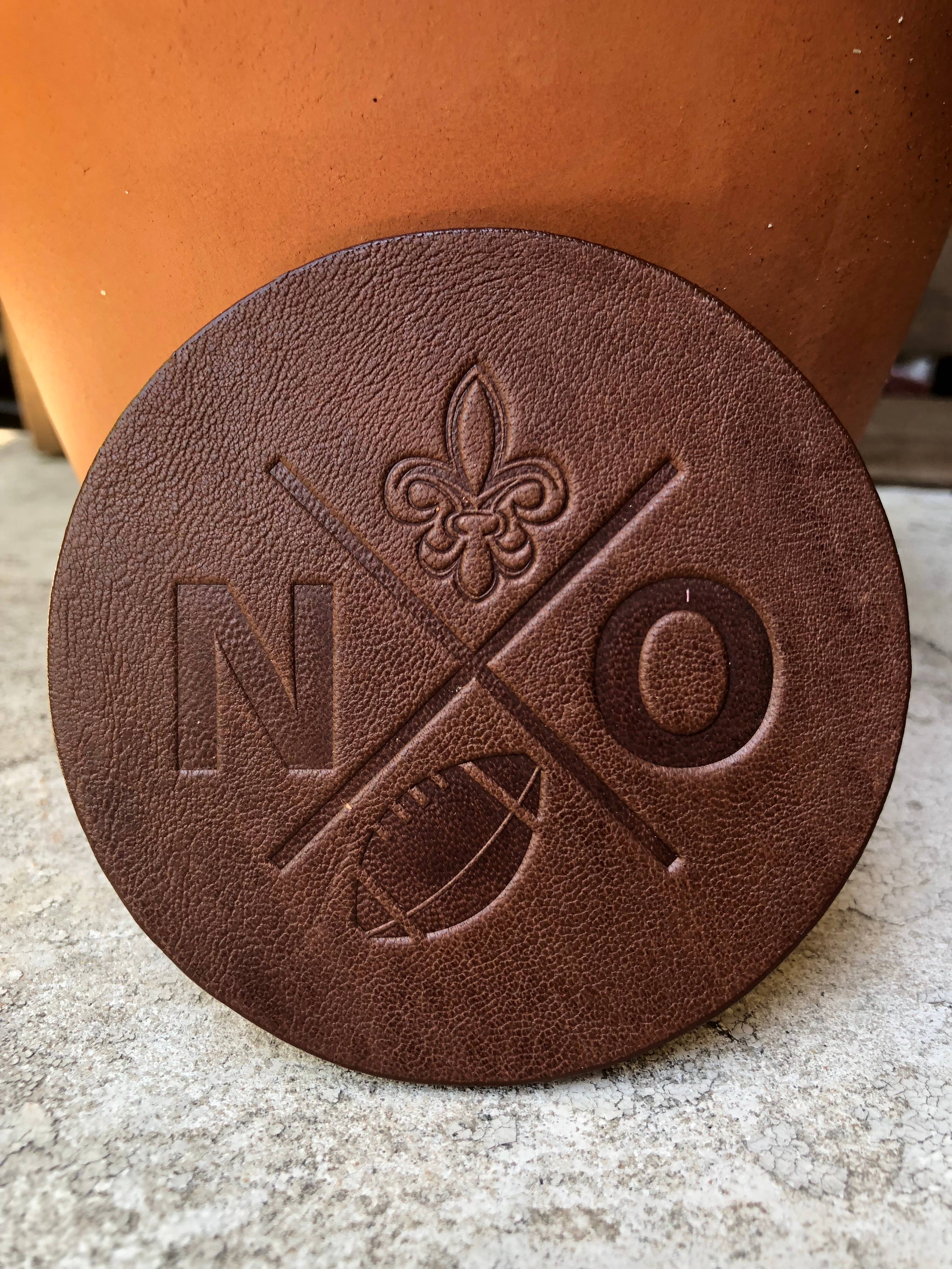 Nous sommes spécialisés dans la fabrication à la main d'articles en cuir pour la vie quotidienne. Tout en cuir fabriqué aux États-Unis ! Nos meilleures ventes incluent des sous-verres en cuir, des refroidisseurs de canettes en cuir, des flacons gainés de cuir, des verres à bière gainés de cuir, des verres à pierres gainés de cuir. Nous sommes spécialisés dans la mise en place de votre logo ou de votre illustration sur l'un de nos produits. Nous avons plus de 300 modèles en stock qui sont estampés dans le cuir. Nous pouvons également personnaliser nos produits en cuir avec votre logo, votre image, votre événement, votre mariage, votre marque, votre ville, votre État ou des monuments locaux. Nous ajoutons constamment de nouveaux designs. Quelles idées avez-vous ? Laissez-nous vous aider à créer des articles en cuir spécialement pour vous et vos clients. Tendez la main et discutons à ce sujet !