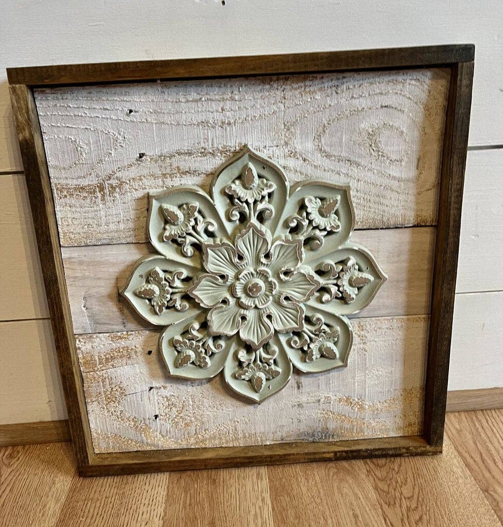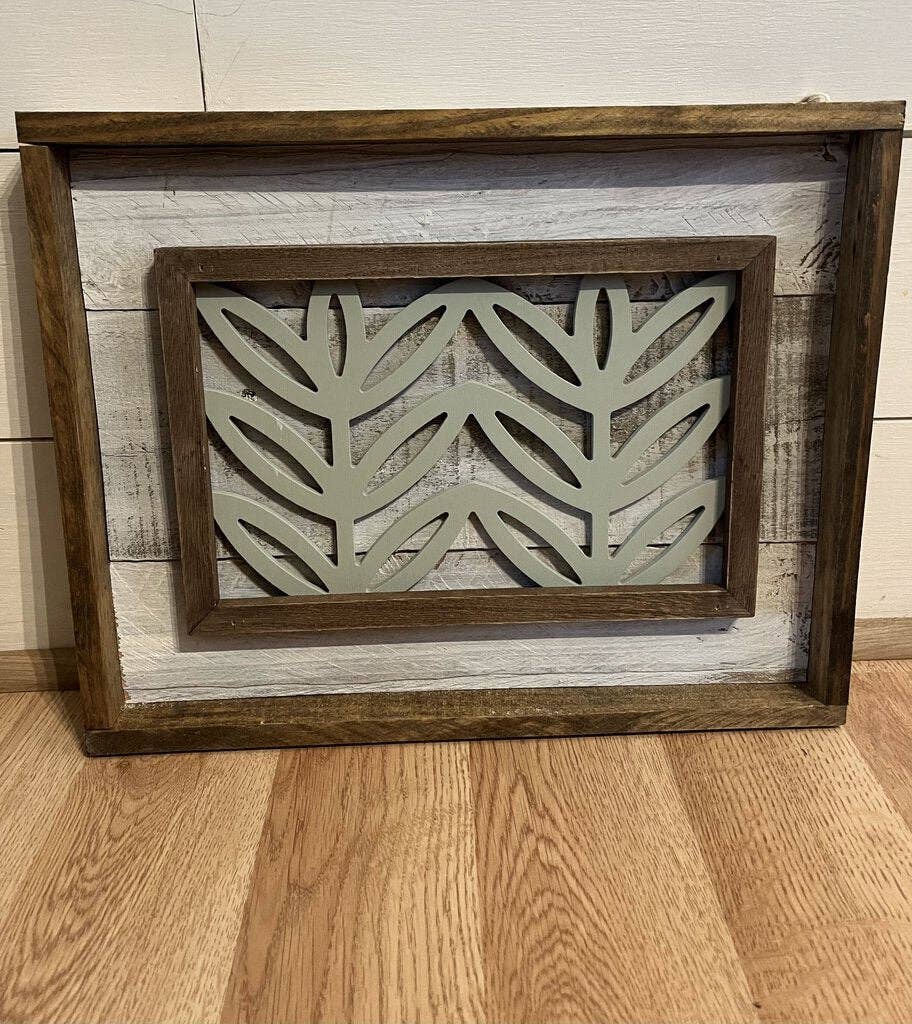 Après que la deuxième tumeur au cerveau de mon mari l'ait rendu handicapé, j'ai rapidement appris à travailler le bois et j'ai commencé à faire de l'artisanat pour gagner un revenu pour notre famille. Maintenant, je trouve des palettes, je les décompose, j'enlève les clous, je peins et je tache, puis je découpe et je construis mon seul cadre pour créer ces arrière-plans pour le décor monté que je trouve !