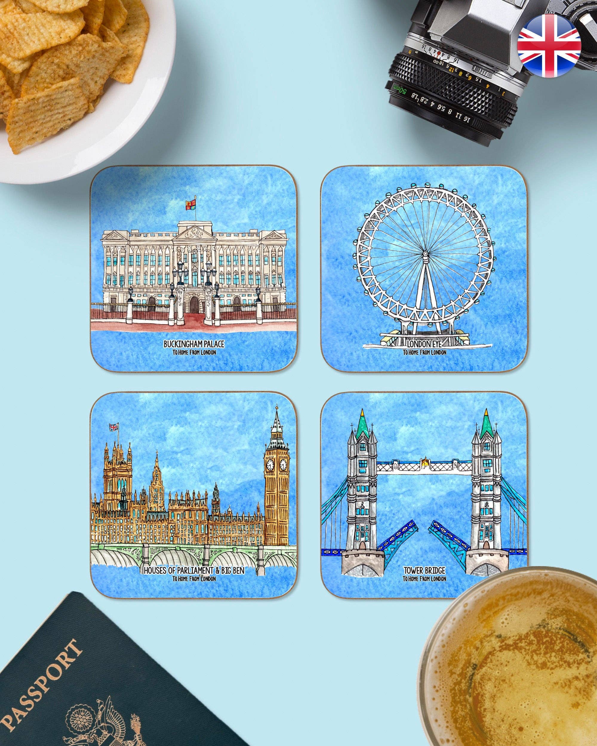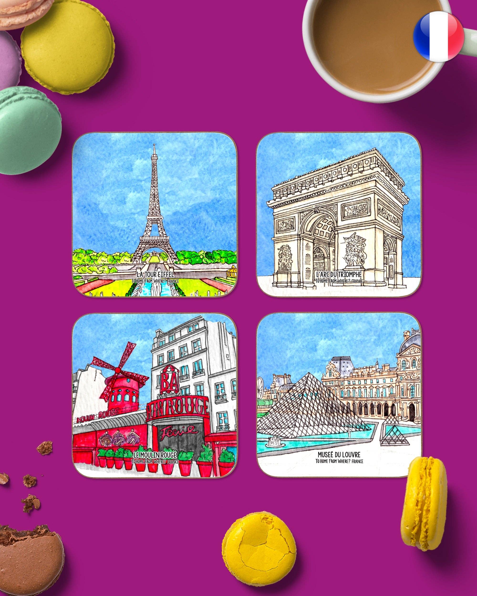 Souvenir /suːvəˈnɪə/ (nom) : chose qui est conservée comme rappel d'une personne, d'un lieu ou d'un événement. Je suis sûr que vous pourriez nommer une marque de cola, de bonbons ou de vêtements... non ? Mais que diriez-vous d'une marque de souvenirs ? To Home From London est la première marque de souvenirs du genre, redéfinissant un marché autrement traditionnel. Les motifs peints à la main aux aquarelles vibrantes font de nos souvenirs le meilleur moyen de commémorer votre voyage ! Londres sera toujours au cœur de notre marque, mais notre objectif était toujours d'offrir nos souvenirs au reste du monde. En partant de cette pensée, To Home From Where ? est né. Les ailes dont nous avions besoin pour emporter nos souvenirs dans le monde entier ! Si les souvenirs sont le souvenir d'une personne, d'un lieu ou d'un événement... pourquoi devraient-ils se limiter aux babioles collecteurs de poussière ? Déplacez-vous sur les figurines de la Tour Eiffel et les porte-clés Big Ben, car nous sommes là pour REDÉFINIR LES SOUVENIRS !