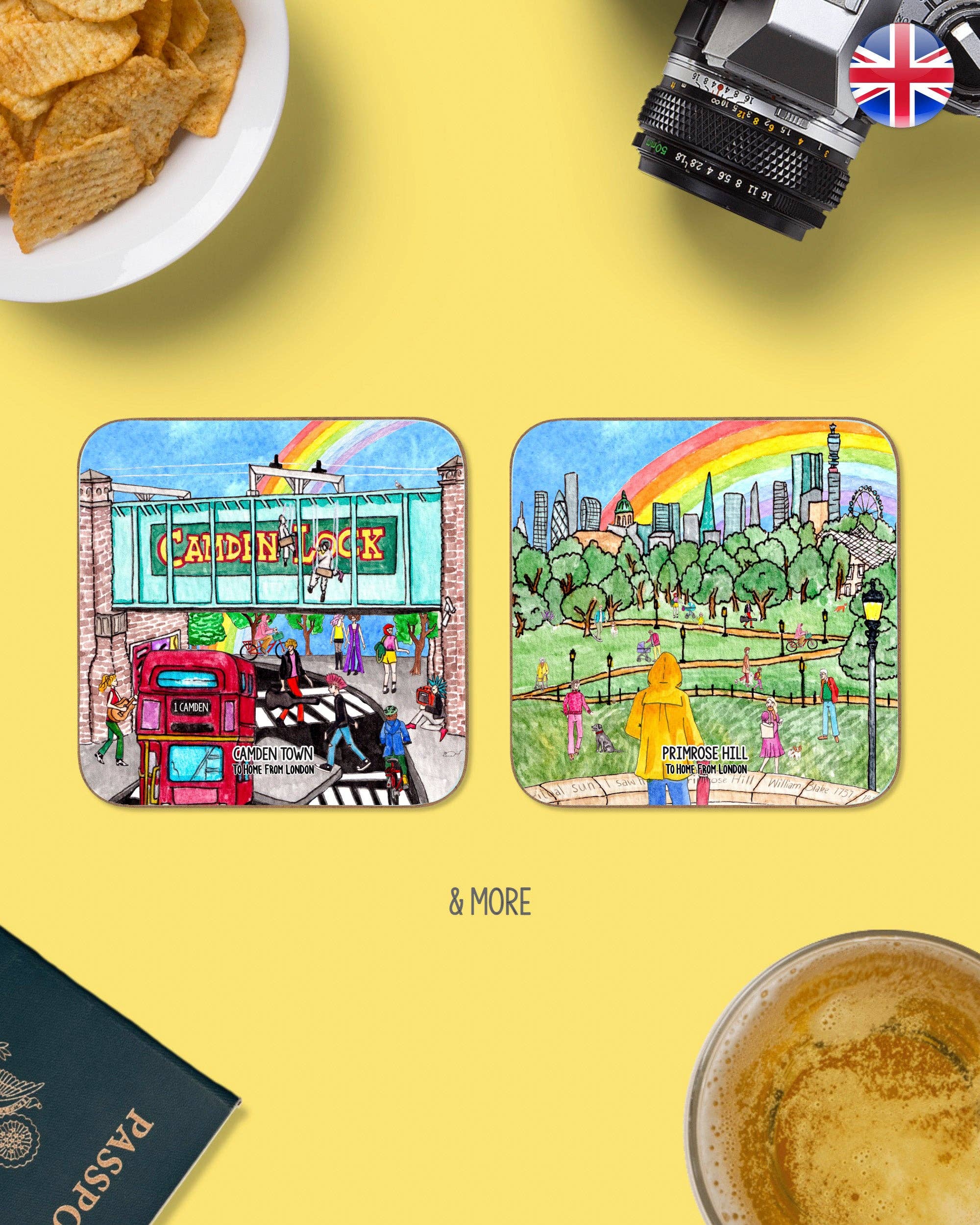 Souvenir /suːvəˈnɪə/ (nom) : chose qui est conservée comme rappel d'une personne, d'un lieu ou d'un événement. Je suis sûr que vous pourriez nommer une marque de cola, de bonbons ou de vêtements... non ? Mais que diriez-vous d'une marque de souvenirs ? To Home From London est la première marque de souvenirs du genre, redéfinissant un marché autrement traditionnel. Les motifs peints à la main aux aquarelles vibrantes font de nos souvenirs le meilleur moyen de commémorer votre voyage ! Londres sera toujours au cœur de notre marque, mais notre objectif était toujours d'offrir nos souvenirs au reste du monde. En partant de cette pensée, To Home From Where ? est né. Les ailes dont nous avions besoin pour emporter nos souvenirs dans le monde entier ! Si les souvenirs sont le souvenir d'une personne, d'un lieu ou d'un événement... pourquoi devraient-ils se limiter aux babioles collecteurs de poussière ? Déplacez-vous sur les figurines de la Tour Eiffel et les porte-clés Big Ben, car nous sommes là pour REDÉFINIR LES SOUVENIRS !