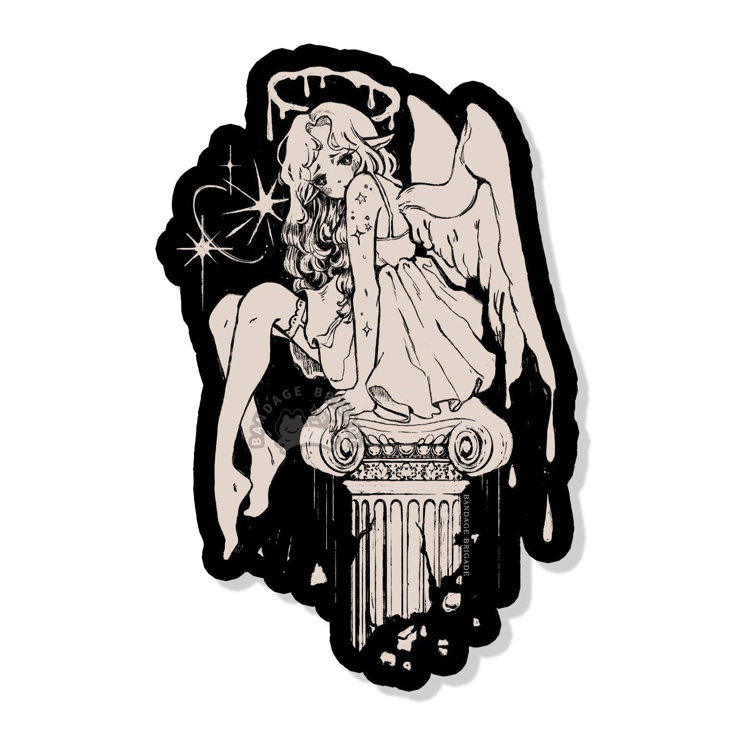 BANDAGE BRIGADE est une marque de vêtements et de style de vie appartenant à des artistes qui se spécialise dans la création de vêtements et d'articles sérigraphiés originaux et stupides tels que des t-shirts, des manches longues, des pulls, des vestes, des chapeaux, des fourre-tout, des chaussettes, ainsi que dans la vente d'articles en papier tels que des autocollants, des épingles en émail, des décalcomanies et des breloques. Leurs créations sont inspirées des chats noirs, des chiens longs, des bananes trop mûres, des fantômes mignons et de la nourriture aux formes étranges.