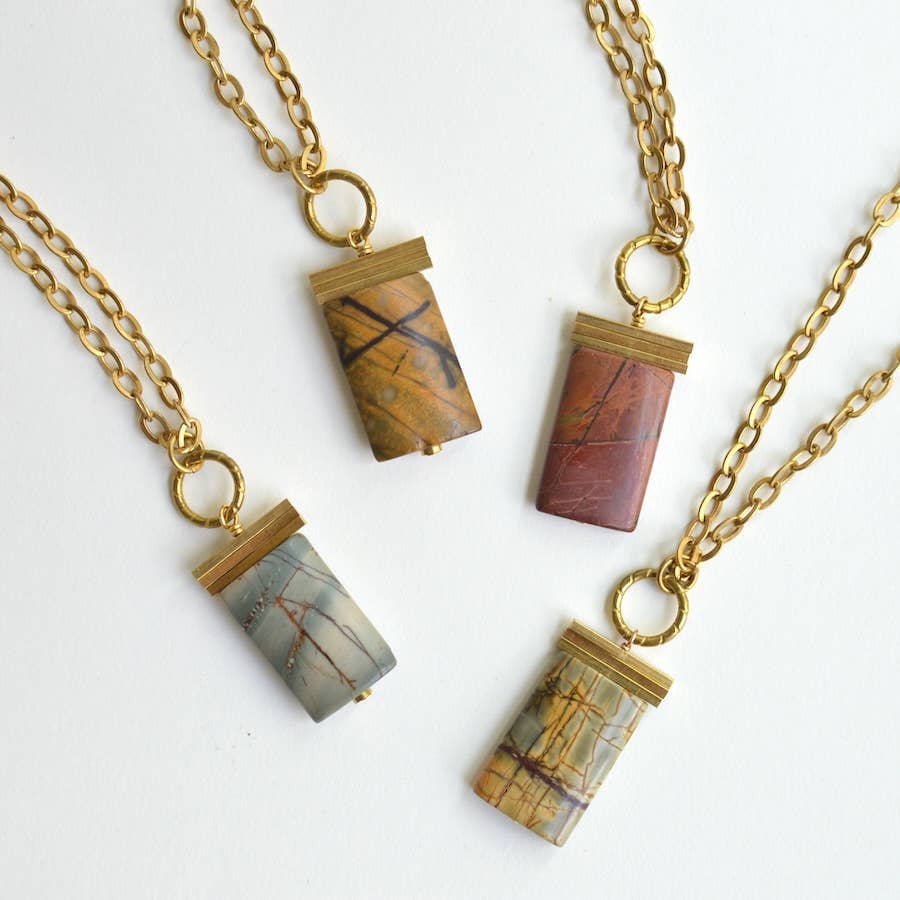 La définition originale du courage (ker-ij) signifie raconter l'histoire de qui vous êtes de tout votre cœur. Ker-ij Jewelry se concentre sur des designs modernes et minimalistes avec une combinaison de laiton et de pierres précieuses pour créer des bijoux artisanaux saisissants et abordables. Des lignes épurées, des pierres précieuses à motifs et des chaînes en forme de serpent soyeuses sont la signature des modèles, dans l'espoir que chaque porteur se sente en confiance et courageux pour raconter son histoire avec Ker-ij. Je suis Stacey Jo Rabiger, je suis la créatrice et la créatrice de bijoux Ker-ij, basée à Salt Lake City, dans l'Utah. Créateur, artisan et passionné de rock depuis l'enfance, Ker-ij Jewelry a été créé en 2011 lorsqu'une paire d'outils artisanaux est arrivée fortuitement avec ma collection de pierres précieuses. Ker-ij a vécu comme un petit passe-temps pendant de nombreuses années jusqu'à ce que le nom de la marque, Ker-ij, prenne vraiment tout son sens.