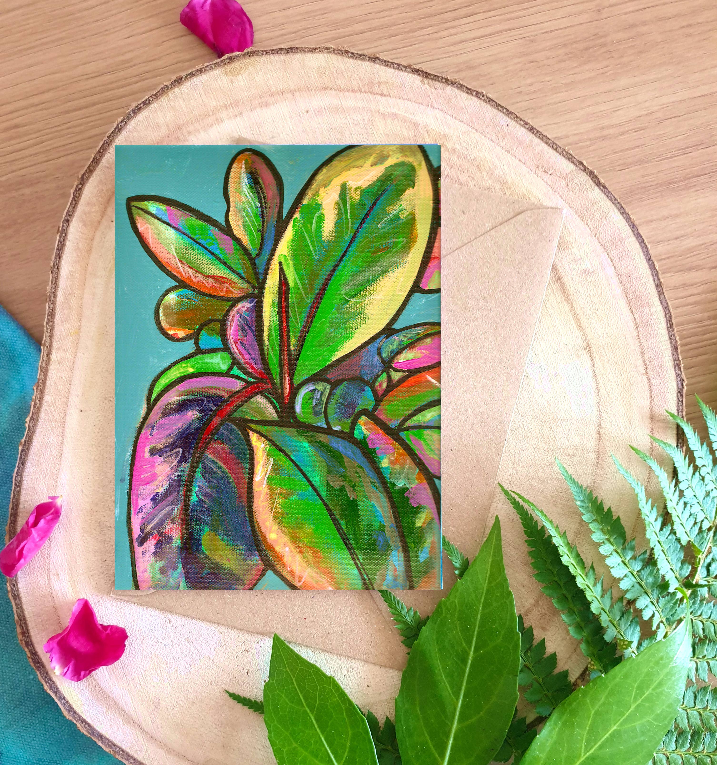 Bonjour, je suis Kat, propriétaire de Plant Based Paintings. J'ai étudié l'art jusqu'au niveau universitaire, mais j'ai fini par abandonner et travailler dans la vente au détail et la gestion pendant plus de 16 ans. À la maison, en congé de maternité, j'ai décidé que c'était maintenant ou jamais pour poursuivre mon rêve de devenir artiste à plein temps, et j'en suis maintenant à ma cinquième année. Toutes mes œuvres ont pour thème les plantes et les fleurs, sont conçues pour être lumineuses et édifiantes, et je vise à être aussi écologique que possible. J'ai planté plus de 300 arbres en collaboration avec onetreeplanted.org et tous les emballages sont exempts de plastique. Je cherche actuellement à élargir le nombre de mes revendeurs et je suis certain que vos clients adoreront mes créations ! N'hésitez pas à envoyer un message si vous avez des questions ou si vous avez besoin d'aide ! Bonne chance, Kat Xx
