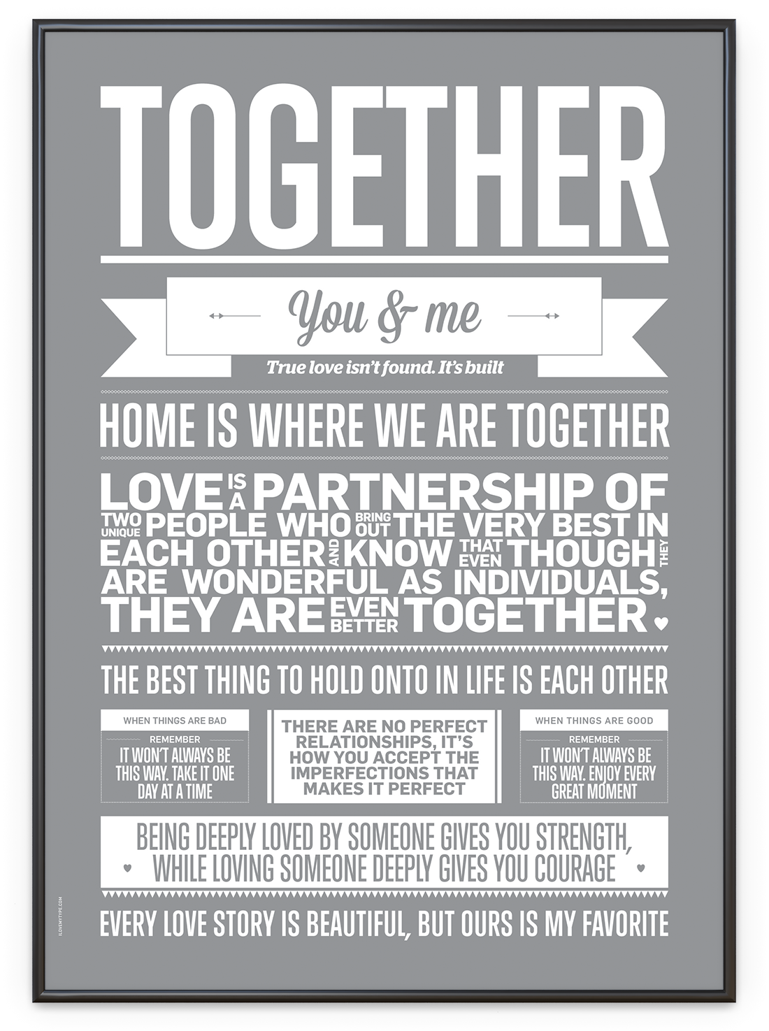 I LOVE MY TYPE est un univers visuel dans lequel la designer Kathrine Højris fait ce qu'elle aime le plus : créer ce qui parle à l'œil et au cœur. Les affiches, carnets, cartes et autres objets créatifs magnifiquement conçus poursuivent une mission : parler aux gens sur un plan personnel. Avec des sujets tels que l'estime de soi, les relations, les amitiés et la famille, I LOVE MY TYPE propose quelque chose à tous ceux qui apprécient le design cool qui a un sens.