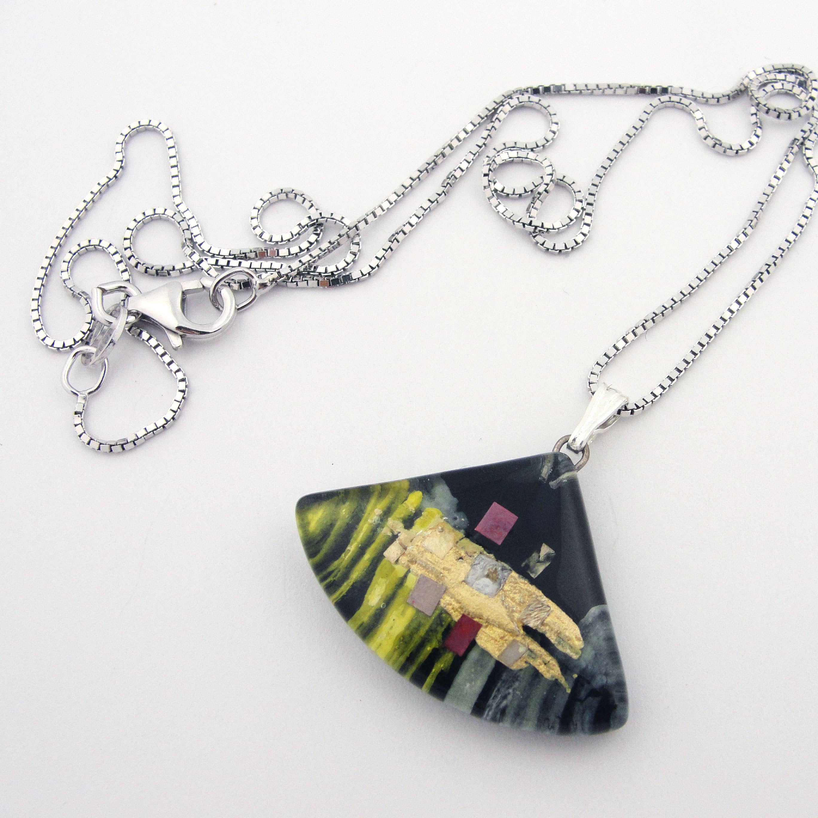 Nous nous sommes rencontrés en Andalousie. En partie à cause d'un chien. Nous avons voyagé dans toute l'Espagne cette première année et, au fur et à mesure, nous avons lu un livre à haute voix intitulé « Momo ». ❊ ❊ ❊ Plus tard, lorsque nous avons commencé à travailler ensemble et à donner des noms aux choses, le titre de ce livre a refait surface, plein de sens. Si vous voulez savoir pourquoi, vous devriez le lire vous-même. Mais sans le dévoiler : c'est une histoire allégorique qui pose de grandes questions sur le travail, le temps et la vie moderne. ❊ ❊ ❊ Nos modèles sont fabriqués en petits lots depuis notre domicile et notre lieu de travail dans l'ouest du Massachusetts. Notre studio est alimenté à 100 % par de l'énergie solaire et nous utilisons du verre flotté recyclé dans la mesure du possible (principalement dans notre gamme GLASS CANVAS). ❊ ❊ ❊ L'œuvre est largement divisée en deux techniques : (a) la gamme GLASS CANVAS, où des couches d'émail peint et un collage métallique sont piégées entre deux couches de verre ; (b) la gamme BRIGHT MOSAIC, une interprétation colorée, étincelante, moderne et contemporaine des bijoux en verre dichroïque. ❊ ❊ ❊