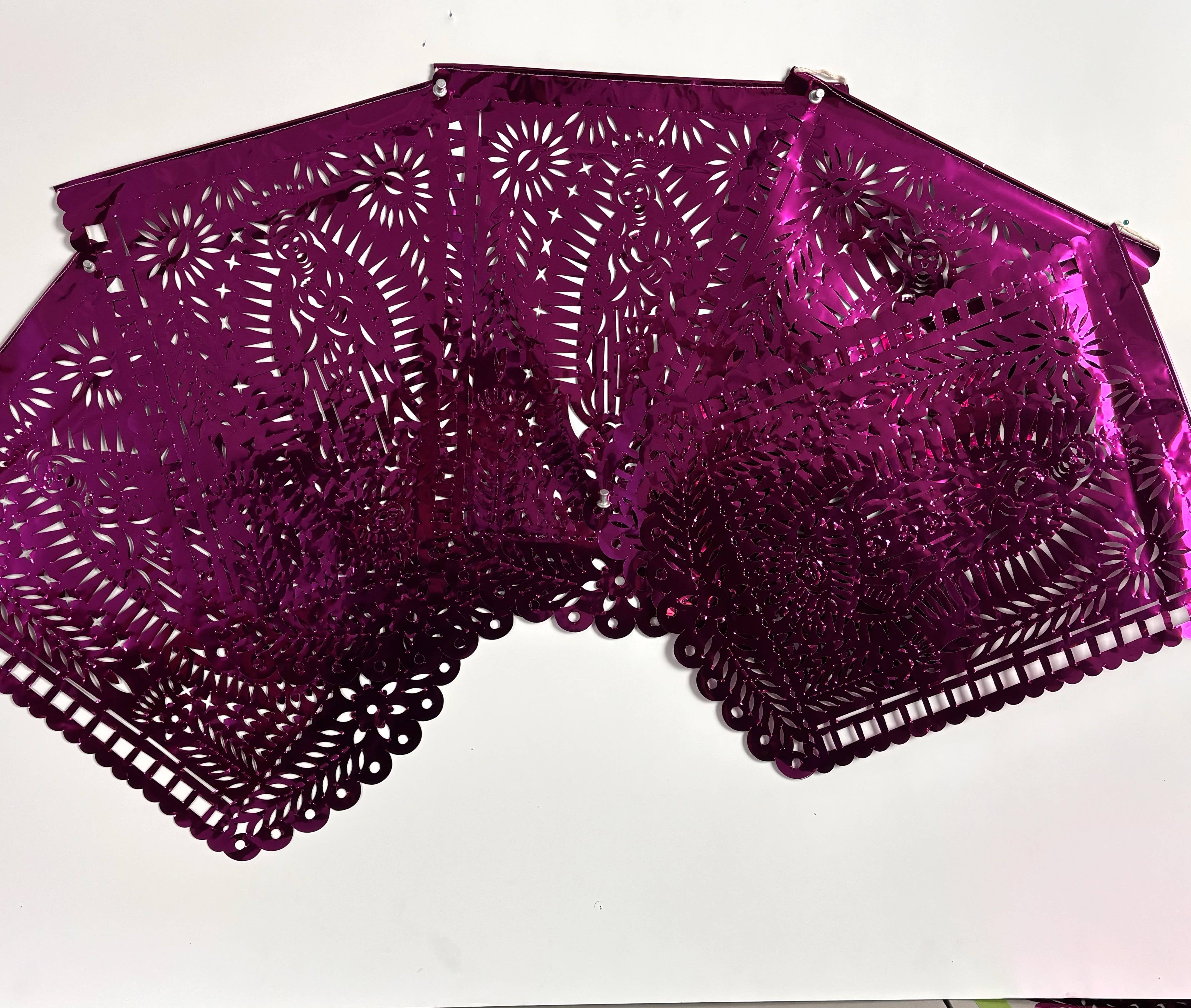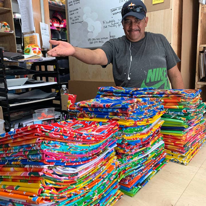 Vive l'art populaire mexicain ! Nous sommes les créateurs originaux des moules en forme de crânes en sucre qui sont utilisés pour fabriquer les crânes en sucre adorés qui rendent hommage à nos proches décédés le jour des morts. Nous travaillons avec des artistes de 6 États du Mexique pour créer toutes sortes d'œuvres d'art populaire utilisées pour orner les autels des maisons et les tombes des cimetières à l'occasion du Jour des Morts. Notre qualité est toujours excellente pour les musées et presque tout ce que nous vendons repose sur des histoires et des objectifs. Une fois la saison des crânes de sucre terminée, nous sommes connus pour nos nappes en toile cirée personnalisées et les emblématiques chaînes flottantes de bannières en papier de soie découpées à la main appelées « papel picado ». Nous avons un artiste papetier de 90 ans qui fabrique des bannières Papel Picado extrêmement détaillées pour toutes les occasions, y compris votre logo personnalisé pour votre boutique.