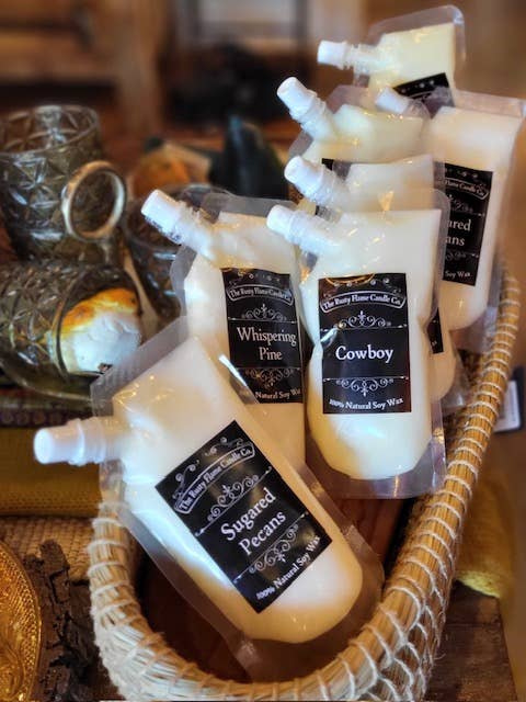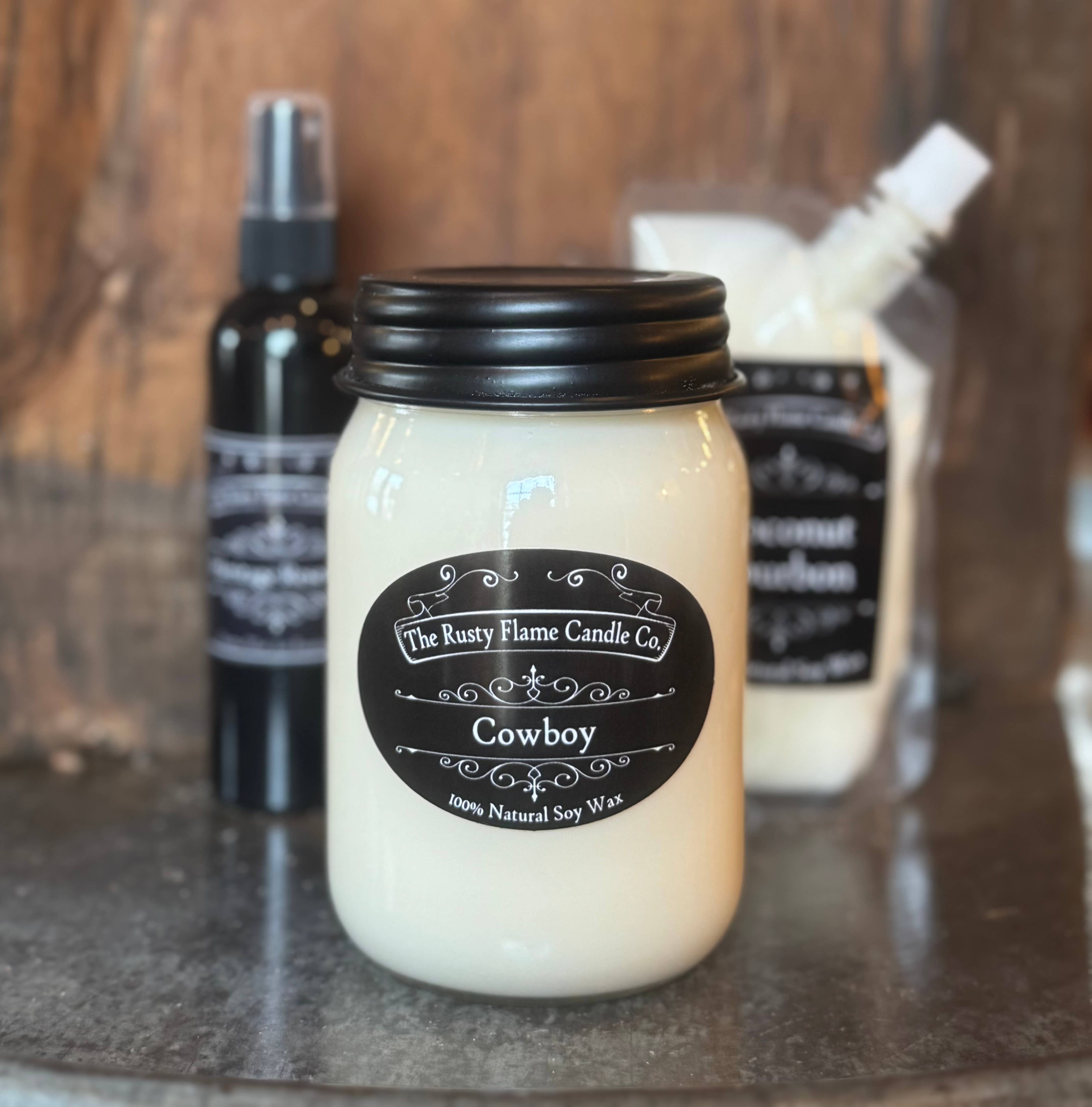 Chez The Rusty Flame Candle Co., nous croyons que l'arôme réconfortant d'une bougie préférée peut rendre ces moments spéciaux dans votre maison beaucoup plus spéciaux et nous nous engageons à vous offrir la meilleure expérience de bougie possible ! Les bougies TRFCC sont amoureusement mélangées et versées à la main en petits lots ici, dans mon petit espace de travail dans la petite ville du Texas où j'ai grandi. Après des années d'essais et de tests de nombreuses cires différentes, je peux dire fièrement, j'offre le meilleur mélange de cire de soja 100% naturelle, écologique, non toxique, cultivée aux États-Unis qui brûle plus propre et plus longtemps que le parafin à base de pétrole et je choisis aussi de ne pas ajouter de couleur à l'une de mes bougies pour éviter les ingrédients nocifs dans le colorant. Personnellement, je mélange les huiles parfumées de la plus haute qualité et les huiles essentielles pour créer mes propres recettes et offrir un menu avec une variété de parfums disponibles dans des récipients de pots réutilisables uniques à votre choix !
