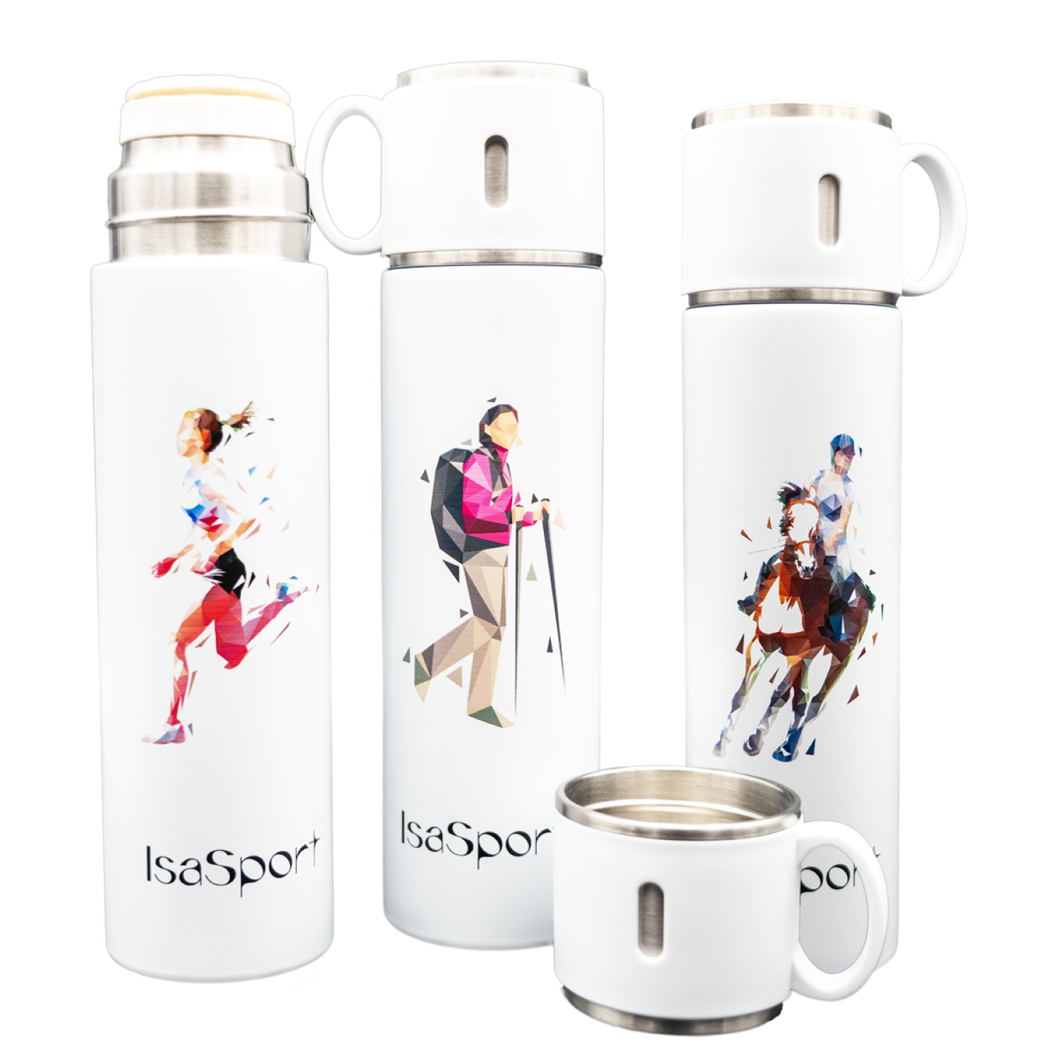 Isa et Emile Sahsah viennent de lancer IsaSport un concept sport, des bouteilles isothermes à Tasse avec des illustrations sportives soigneusement désignées: Foot, Rugby, Golf, Equitation, Randonnée...13 sports bien illustrés, d'une capacité de 580ml(19.6oz), d'une isolation optimale, étanche, double paroi extérieur 304 sus et intérieur 316 sus en acier inoxydable sans BPA ni phtalates. Son Atout: la TASSE pour boire un café ou une boisson n'importe où.