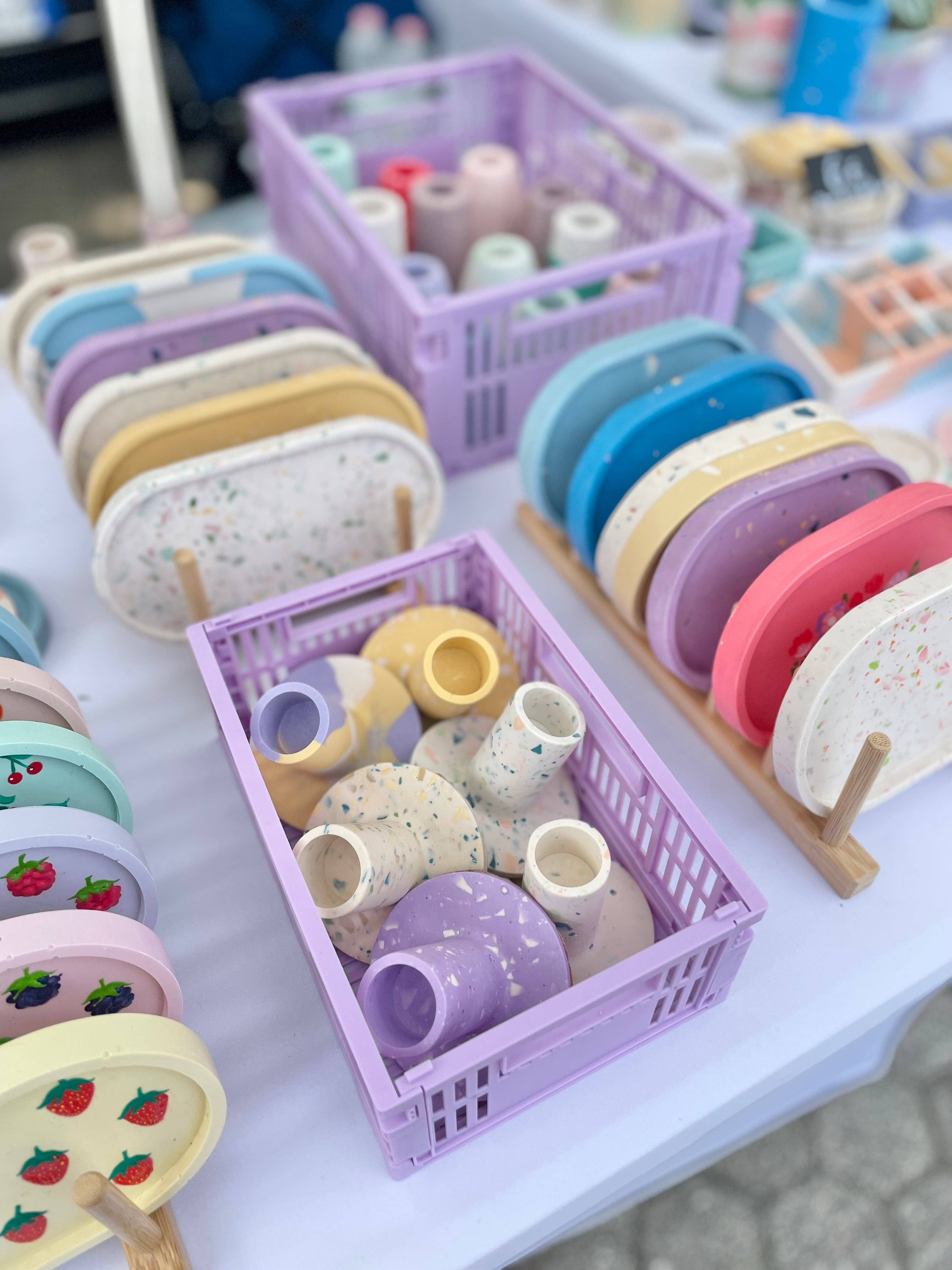 Kookie est une petite entreprise artisanale née en 2022 de l'intuition de Silvia, qui a décidé de quitter la routine du bureau pour embrasser une vie axée sur la créativité et la couleur. Ce projet représente une parfaite synthèse entre passion artistique et entrepreneuriat durable, offrant au marché des objets décoratifs entièrement uniques et réalisés à la main en Italie. Le cœur de l'offre Kookie est constitué d'éléments décoratifs créés en éco-résine, un matériau innovant à base minérale totalement non toxique qui garantit sécurité et durabilité environnementale. Chaque pièce est le fruit d'un processus artisanal méticuleux qui assure l'unicité de chaque création. La collection se distingue particulièrement par le motif iconique "terrazzo", devenu rapidement la signature distinctive de la marque et le préféré des clients. Ce motif, qui évoque la tradition italienne du terrazzo vénitien, est réinterprété de manière contemporaine grâce à l'utilisation habile de l'éco-résine. Le projet Kookie représente non seulement une activité commerciale, mais aussi une philosophie de vie qui célèbre l'artisanat italien et le courage de suivre ses passions créatives.