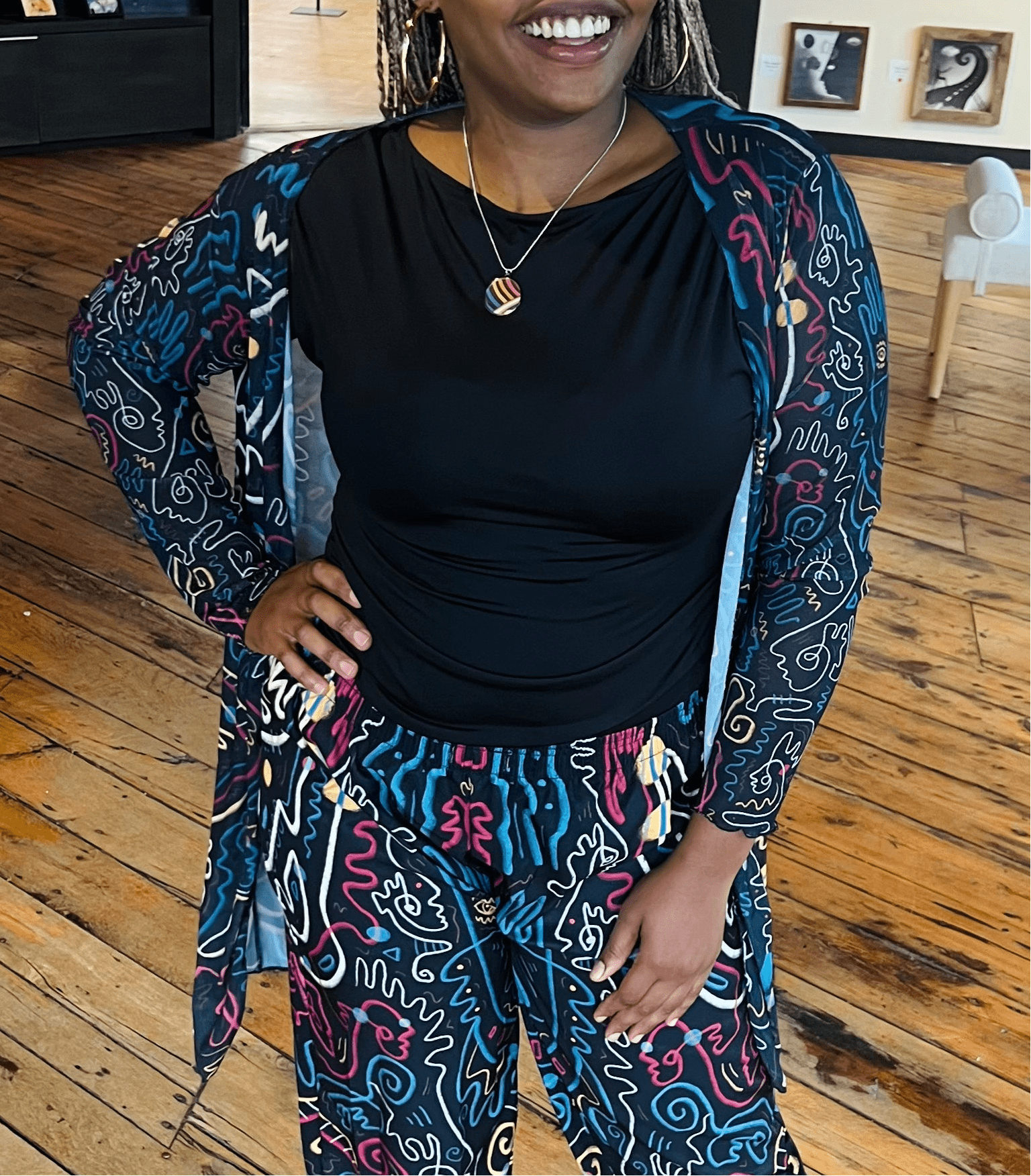 Je m'appelle Kira Bursky. Je suis une artiste multidisciplinaire et je transforme mon art en mode, décoration intérieure et plus encore. Chaque pièce que je propose présente mon œuvre originale. Tout mon travail est inspiré par la santé mentale. Avez-vous entendu parler du concept de "Dopamine Dressing" ou "Dopamine Decor" ? C'est l'idée de porter ou de décorer avec ce qui vous fait vous sentir bien. À travers mes designs maximalistes, audacieux et uniques, j'espère inspirer la joie, la curiosité et le jeu à travers l'expression de soi ! N'hésitez pas à me contacter pour toute question : kira@allaroundartsy.com Points forts : -Mes créations d'art à porter sont devenues virales avec plus de 10 millions de vues -Chaque pièce présente mon art original. En achetant chez moi, vous soutenez directement une marque dirigée par un artiste. -Je travaille avec différents partenaires de production incroyables pour donner vie à mes créations. Ils sont principalement basés en Caroline du Nord, Caroline du Sud et en Asie. -Je suis ouverte aux commandes personnalisées. Vous voyez une œuvre d'art particulière à laquelle vous vous connectez mais vous souhaitez la voir sur un autre vêtement ou produit ? Contactez-moi et voyons ce qui est possible ! -Je produis également des articles pour la maison tels que des tapis, des taies d'oreiller, des couvertures, des rideaux et plus encore. Contactez-moi si vous êtes intéressé.