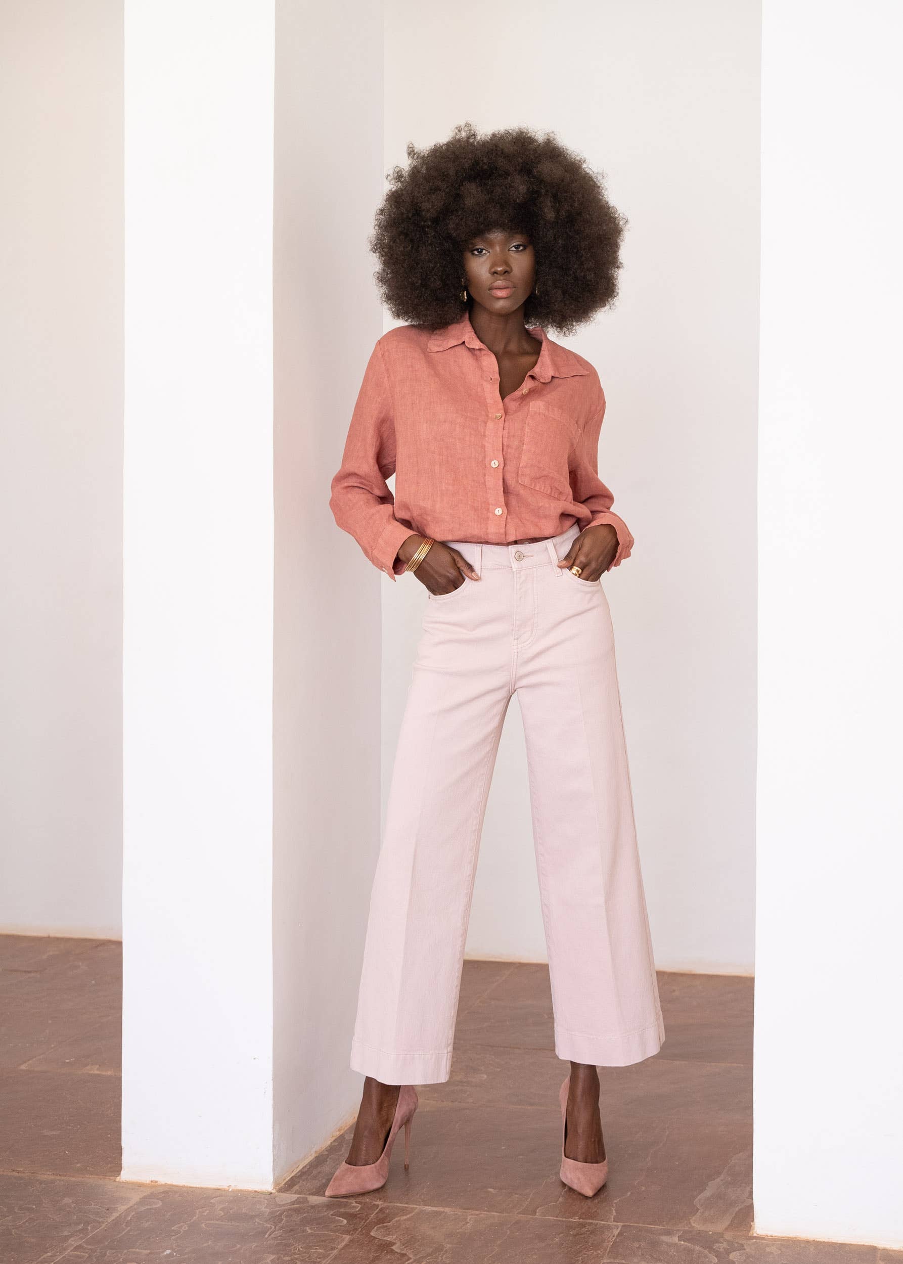 Le jean Oraije, c'est la promesse du confort et de la confiance en soi. Qui que vous soyez, quoi que vous faisez dans la journée, ce sont nos jeans qui doivent s'adapter à vous, et non l'inverse. En tant que directrice de collection, j'ai pour mission de m'assurer que les femmes Oraije soient pleinement satisfaites. Et pour cela, je dois sans cesse repousser mes limites et celles de mes créations. Une idée ; c'est immédiatement un croquis, un chapitre et une nouvelle histoire. Cela peut être un tout petit détail, un bouton, une poche, une broderie, un ourlet. Autant de petites additions qui rendent nos jeans toujours plus confortables, élégants et adaptés à votre morphologie. Ce croquis devient ensuite un dessin technique, puis un choix de tissu, de couture, des finitions qui font nos jeans plus audacieux. Pour obtenir des jeans qui s'ajustent à toutes les femmes, je dois toujours aller plus loin. Aller au devant des tendances, prendre plaisir à travailler avec de nouvelles matières, de nouvelles textures. La plupart des designers choisissent un tissu. Je choisis personnellement les fils qui vont composer le tissu. J'arrive à l'atelier avec une vingtaine de tissus différents et, de chaque, j'extrais un fil qui fera partie de la gamme de tissage qui m'intéresse.