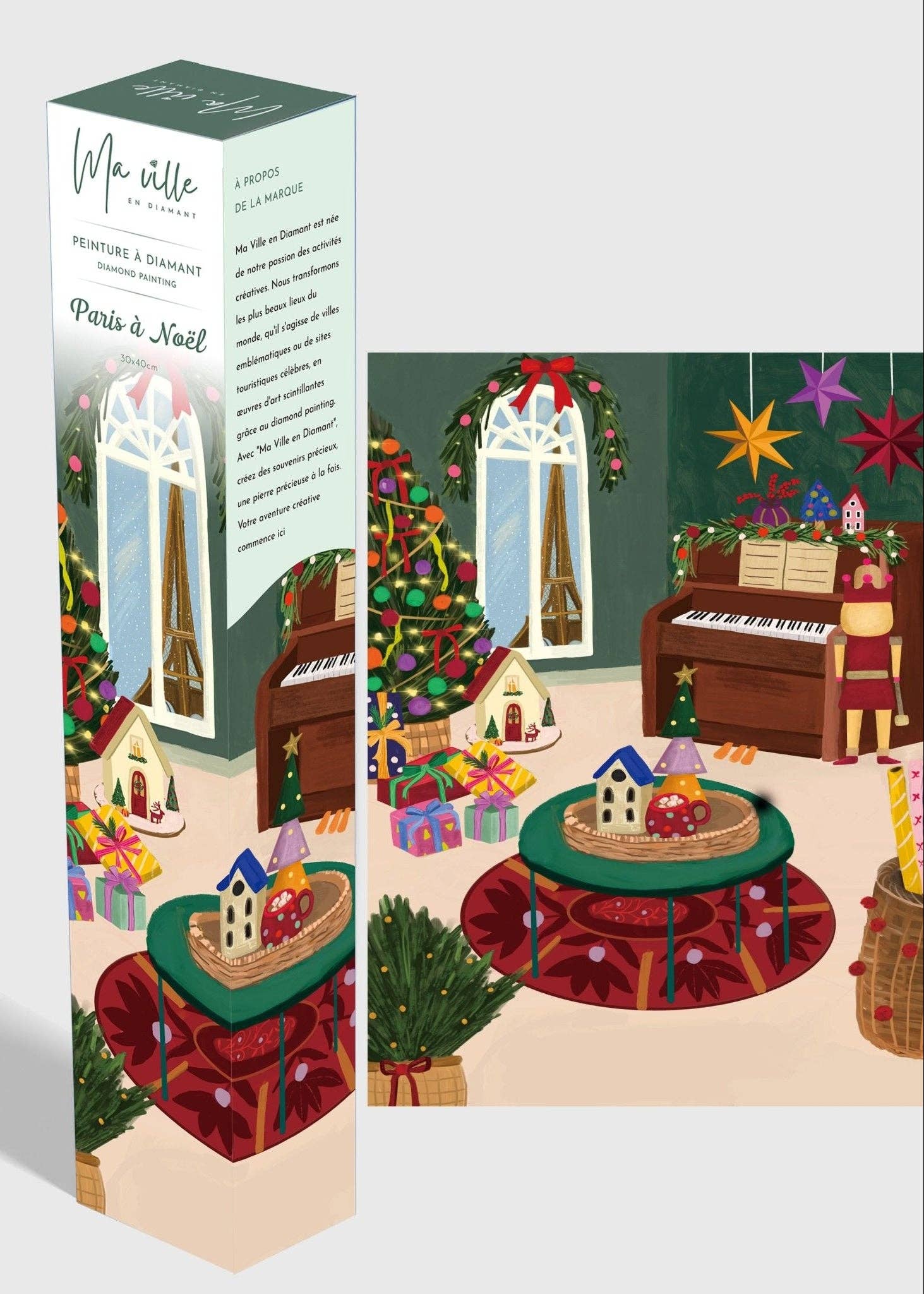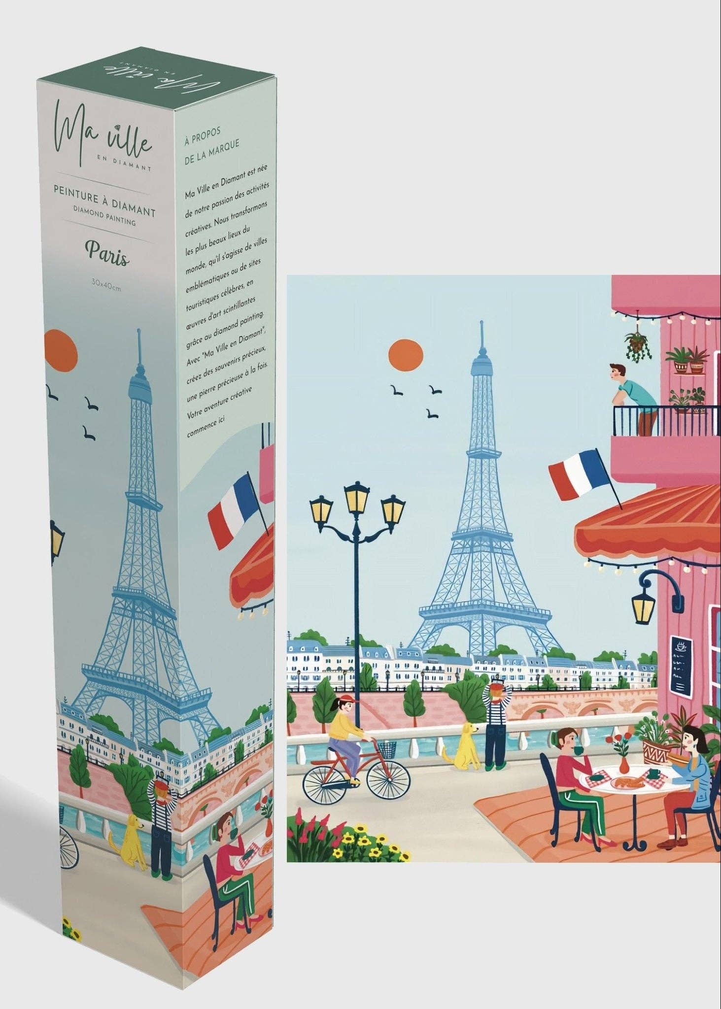 Ma Ville en Diamant est une marque française née d’une passion pour les activités créatives et apaisantes. Nous transformons les plus beaux lieux du monde – de Paris à Venise, en passant par Bordeaux ou Lisbonne – en tableaux scintillants à créer soi-même grâce au diamond painting. Nos kits complets offrent une expérience relaxante et artistique, idéale pour offrir ou s’offrir un moment de détente. Chaque design est réalisé par des illustratrices professionnelles, pour garantir des créations uniques et inspirantes.