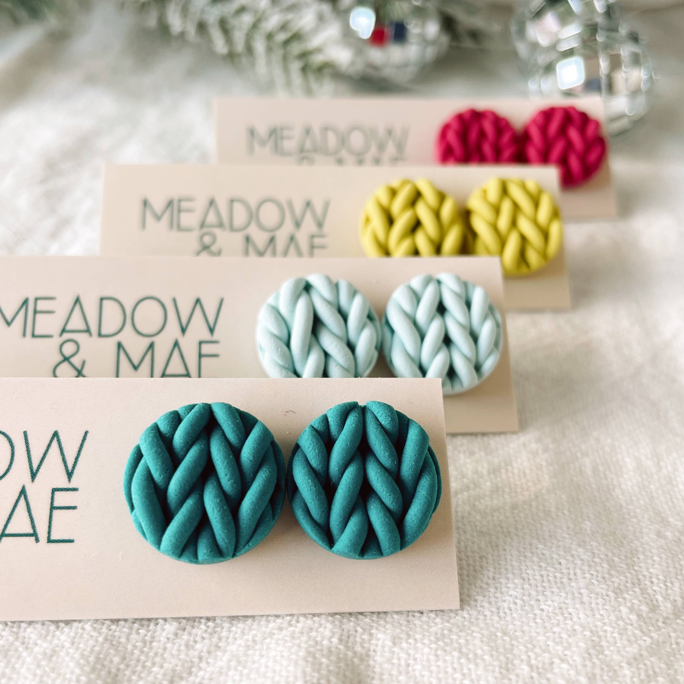 Meadow & Mae vend des bijoux en argile polymère faits à la main, légers, conçus pour vous aider à vous démarquer. Nous visons à offrir des pièces audacieuses et excitantes qui restent portables et agréables pour les oreilles. Chaque pièce de nos bijoux est fabriquée lentement du début à la fin avec beaucoup d'amour et d'intention, en commençant par des couleurs d'argile personnalisées mélangées à la main, qui sont ensuite façonnées, durcies et finies avant d'être assemblées avec des tiges et crochets d'oreilles hypoallergéniques. Chaque design de Meadow & Mae est créé dans le but d'aider les gens à embrasser leur propre style personnel et à apprendre à aimer les couleurs vives, surtout dans un monde où les choses peuvent sembler ternes et grises. Madeline Allen (artiste et propriétaire) est originaire du Minnesota et a récemment déménagé à Sacramento, en Californie. Elle a lancé Meadow & Mae en 2021 et gère actuellement l'entreprise depuis son studio à domicile.