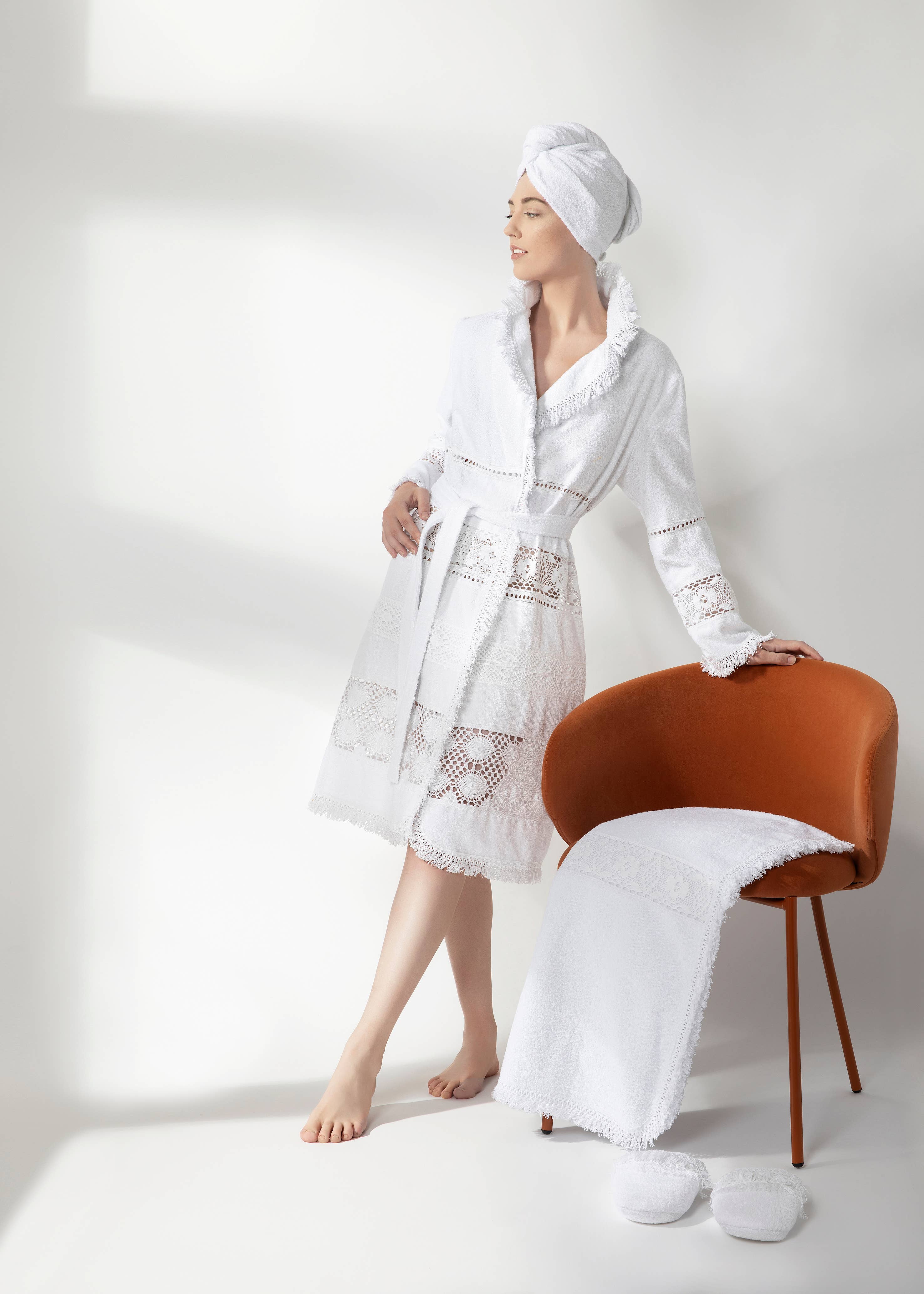 Le luxe de l'éponge fabriquée en Italie Nos collections comprennent des peignoirs en éponge, des vêtements de plage pour femmes, des accessoires et des vêtements d'intérieur Le linge de bain de luxe en éponge, nid d'abeille et microfibre Fabriqué en Italie a été créé pour que vous vous sentiez toujours au mieux de votre forme. Découvrez les collections de design Luna di Giorno, idéales pour vous détendre à la maison, passer une journée de bien-être à la plage ou au spa. Dans les collections Luna di Giorno, des peignoirs, des ensembles en éponge ou en microfibre vous attendent avec des accessoires élégants et design pour un maximum de confort et un style toujours raffiné. La qualité, la coupe parfaite et le design raffiné, avec des détails ajustés élégants, font de chaque accessoire et sous-vêtement Luna di Giorno un compagnon inséparable pour les femmes qui aiment profiter pleinement de chaque moment de bien-être.