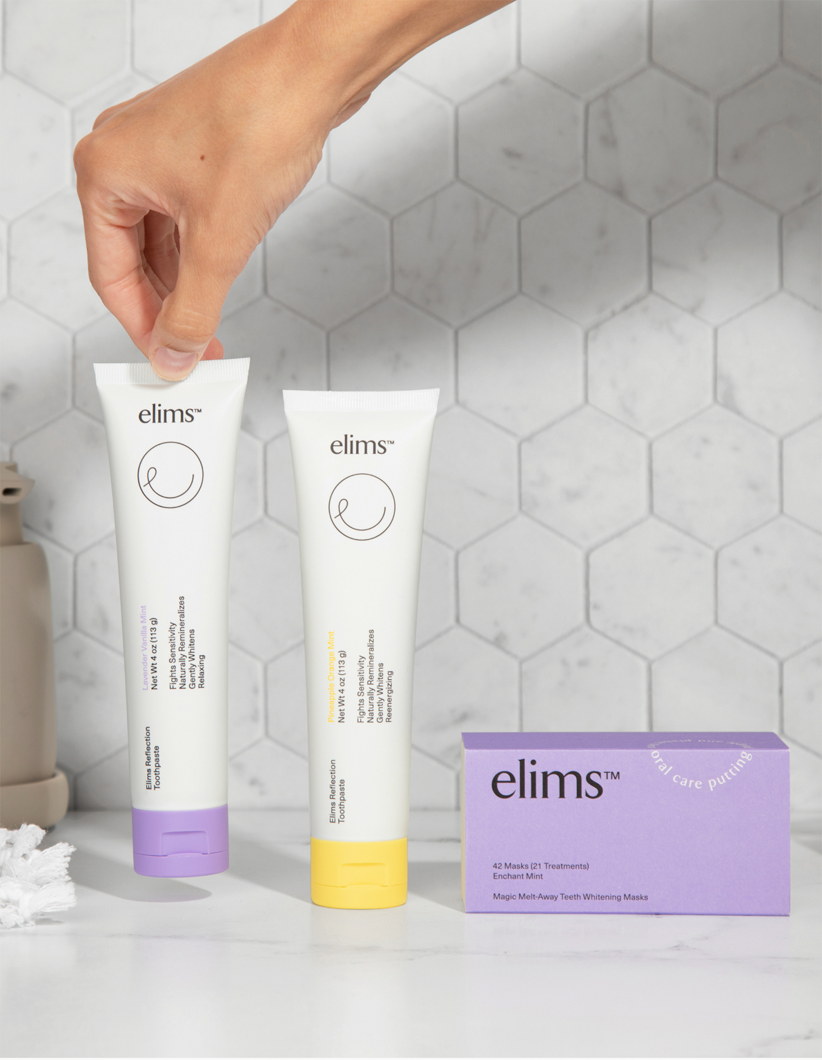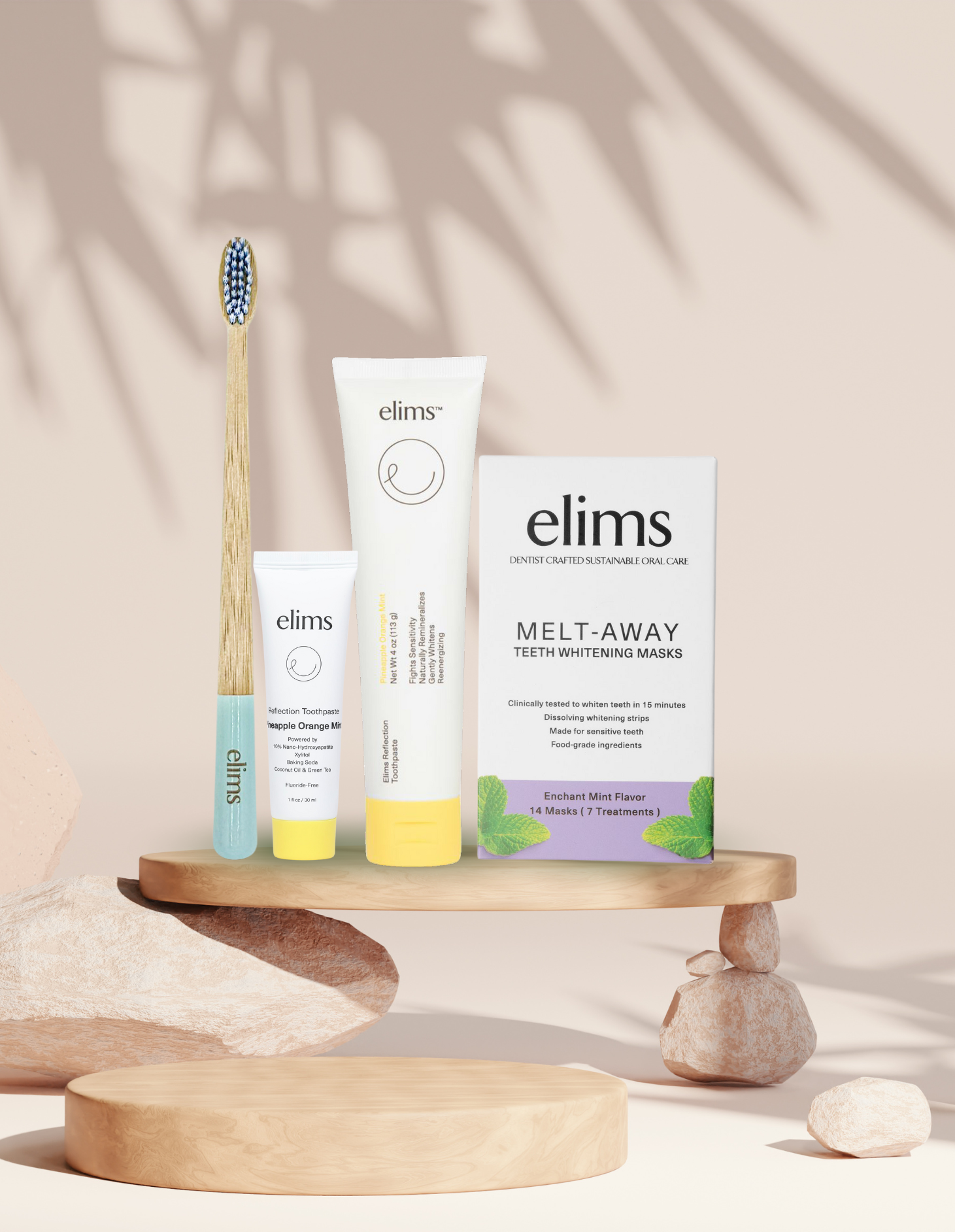 ELIMS est le « sourire » du monde à l'envers. Parce que c'est le sourire que vous voyez dans le miroir, et nous croyons que lorsque vous vous sentez bien et que vous faites du bien, vous aimez votre reflet. Elims est une entreprise à impact social qui combine des soins bucco-dentaires sérieusement efficaces et une réelle durabilité. Nous pensons que vous n'avez pas à compromettre votre santé pour la planète. C'est pourquoi nous ne sommes pas simplement durables. Chacun de nos produits est fabriqué par des dentistes et des professionnels de la biotechnologie, et ils permettent de garder vos dents propres et d'un blanc éclatant. Nous combinons uniquement le meilleur de la science et de la nature en utilisant des ingrédients cliniquement soutenus avec des ingrédients naturels efficaces, pour que vous sachiez que cela fonctionne.