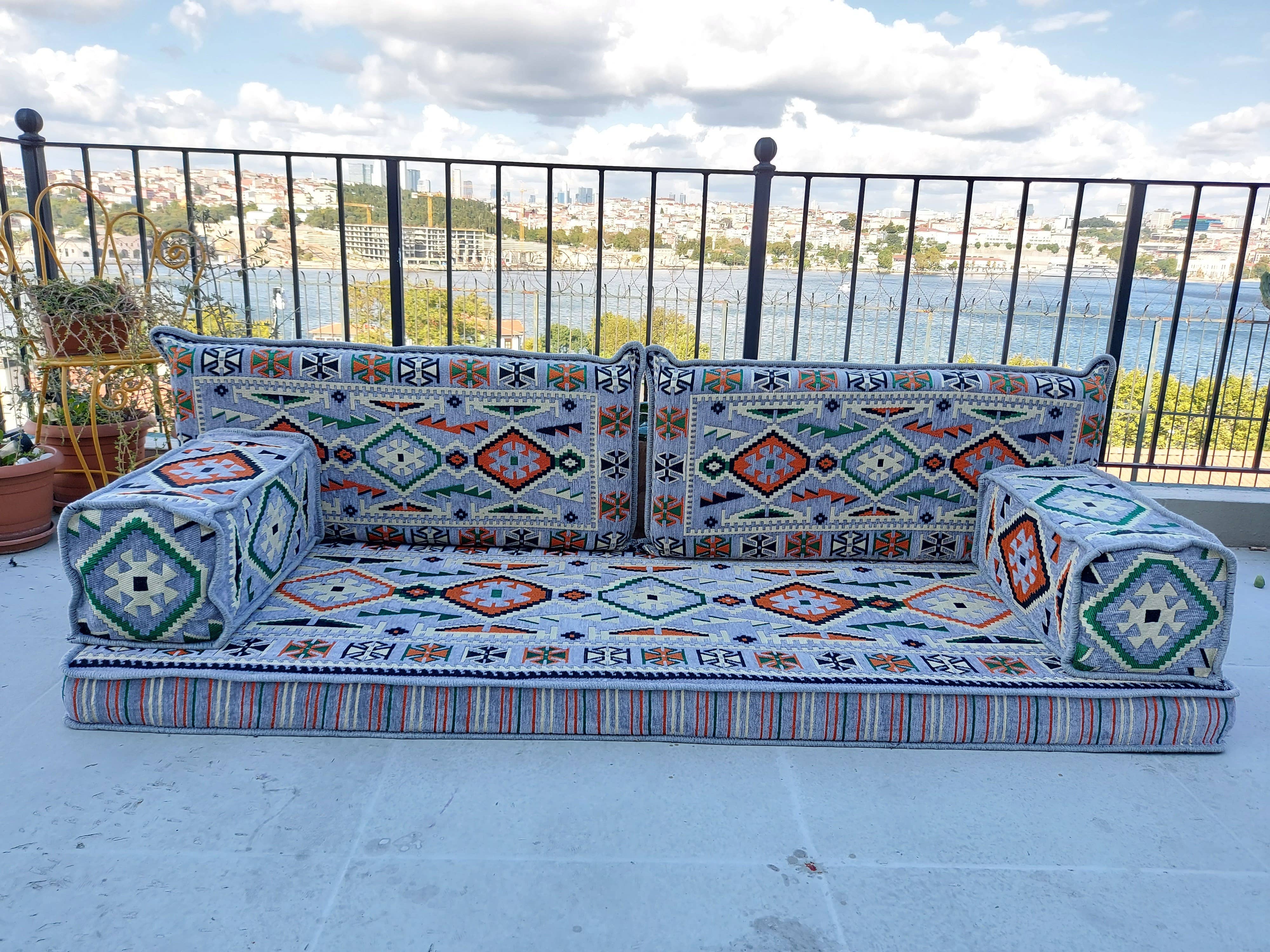 C'est un style fait de coussins de sol et d'oreillers traditionnels, qui est une culture de décoration dans des lieux appelés chambres orientales en Anatolie. Cette culture, qui trouve ses racines dans l'Antiquité, a été préférée dans des domaines tels que les maisons, les restaurants, les cafés et les terrasses ces dernières années. Ces coussins, qui reflètent également notre propre culture, sont également préférés pour créer un environnement de conversation chaleureux. Vous pouvez créer un environnement élégant et authentique et découvrir cette atmosphère authentique avec ces oreillers, que nous pouvons produire dans des tailles spéciales et sans sacrifier la qualité, par l'équipe d'Arabic Sofa pour ceux qui souhaitent une décoration intérieure originale. Nous voulons faire connaître au monde entier cette culture héritée de notre grand-père à notre père et à nous de notre père.
