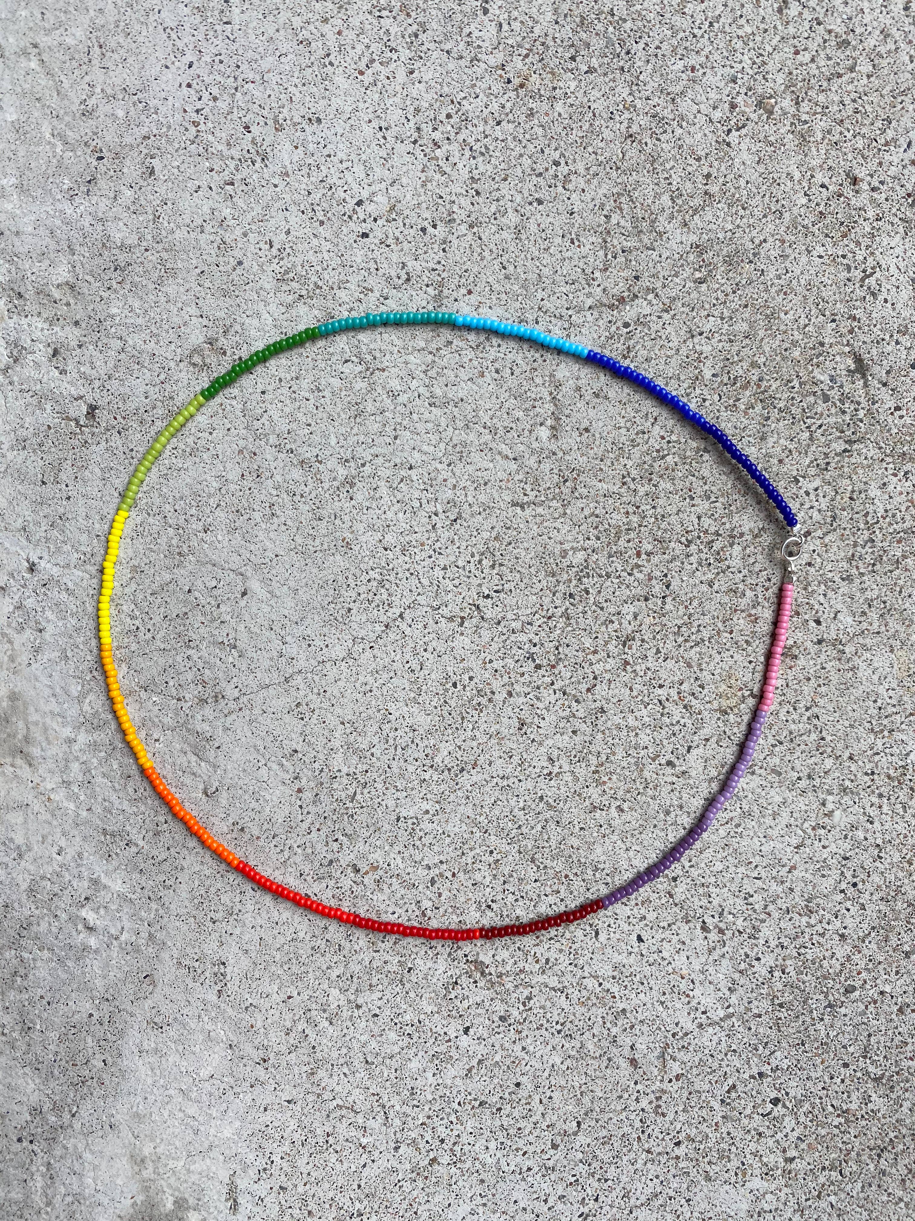 Accessoires en perles de verre aux couleurs arc-en-ciel fabriqués à la main sur commande à Stockholm.