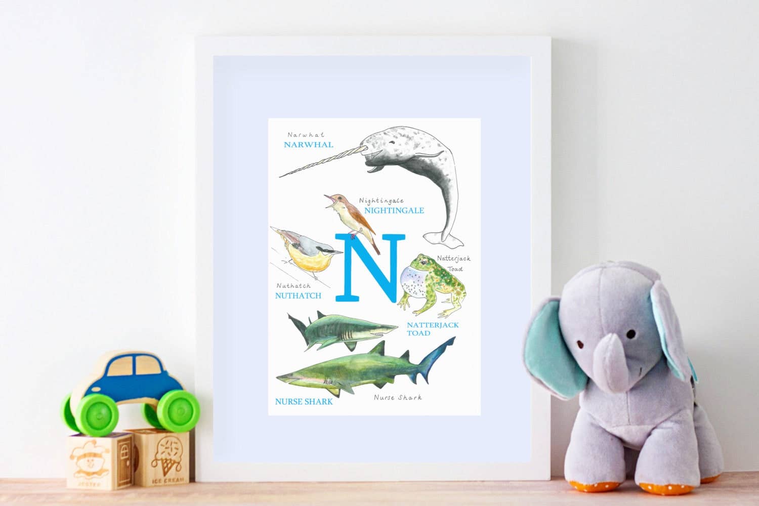 Nous sommes là pour vous aider à faire un excellent cadeau. Que ce soit pour les nouveaux parents, les enfants ou tous ceux qui aiment les animaux et la langue anglaise, de 0 à 99 ans. Parce qu'en remplissant leurs murs de véritables œuvres d'art, de vrais animaux, de mots, de chiffres, les supports pédagogiques stimulent la soif de connaissances en rendant l'apprentissage magnifique. Ce n'est pas simplement un cadeau... qui encourage un style de vie axé sur l'apprentissage... et cela n'a pas de prix. Chaque fois qu'ils le regarderont, ils penseront à vous et à l'amour que vous avez manifesté en achetant ce magnifique cadeau. Ce sera sur leurs murs pendant des années, pas à la fin d'un match nul. Bravo à vous !
