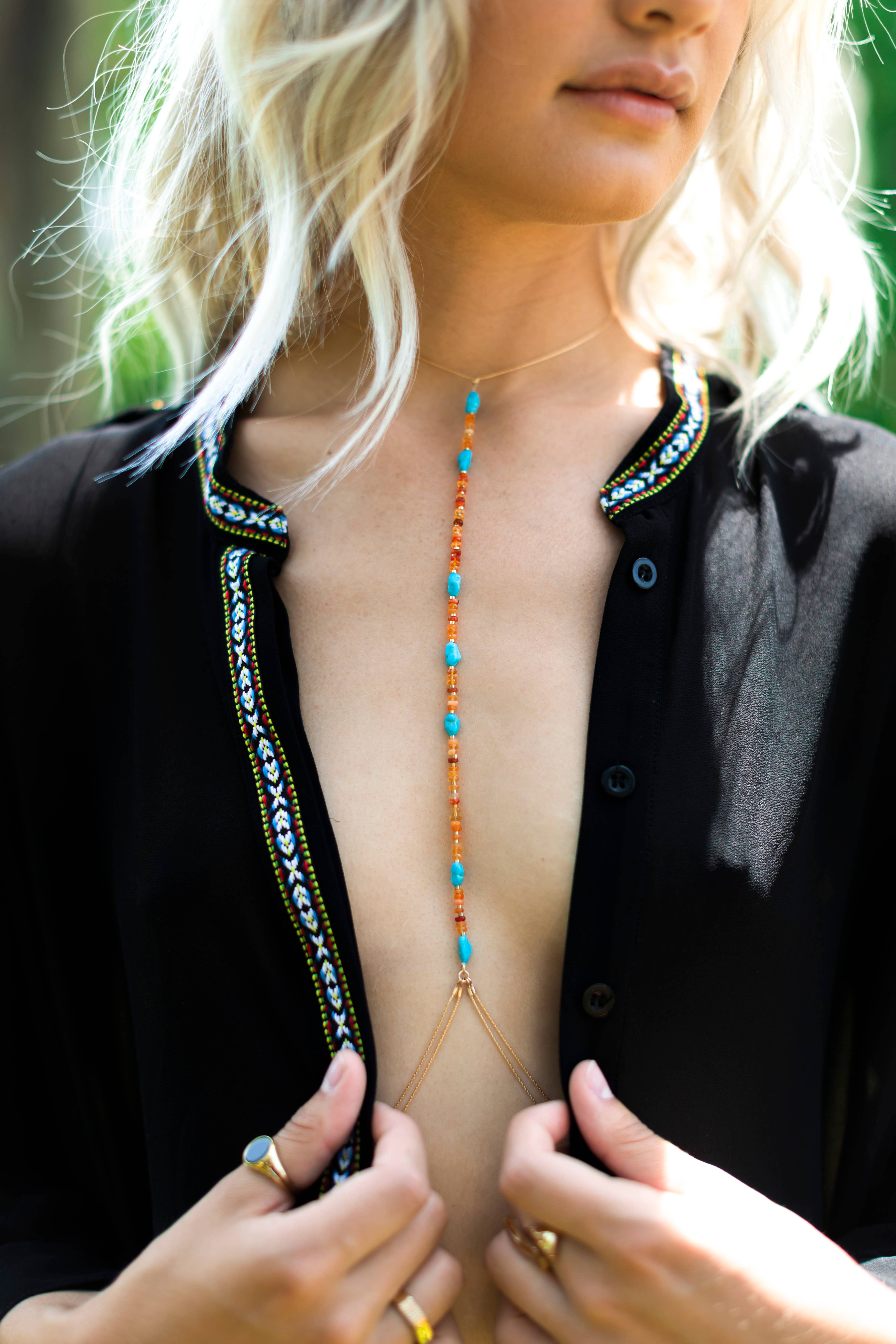 La société YA YA + est née du désir de célébrer la force électrique qui habite en chacun de nous, une occasion de vous regarder dans le miroir et de vous souhaiter la bienvenue chez vous. Chaque bijou est un art fonctionnel à porter, explorant l'artisanat traditionnel et les pratiques artistiques modernes tout en rendant hommage aux ancêtres amérindiens du créateur. Nous croyons qu'il faut repousser les limites de la façon dont nous nous parons, ce qui donne lieu à des pièces perlées à la main et à des bijoux corporels absolument uniques. Le designer veille à utiliser des matériaux d'emballage durables et compostables. Les artistes s'approvisionnent de manière responsable en pierres auprès des membres des tribus autochtones.