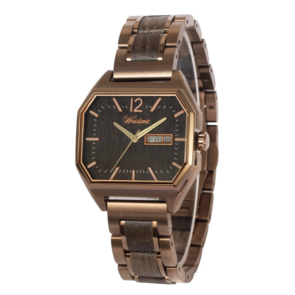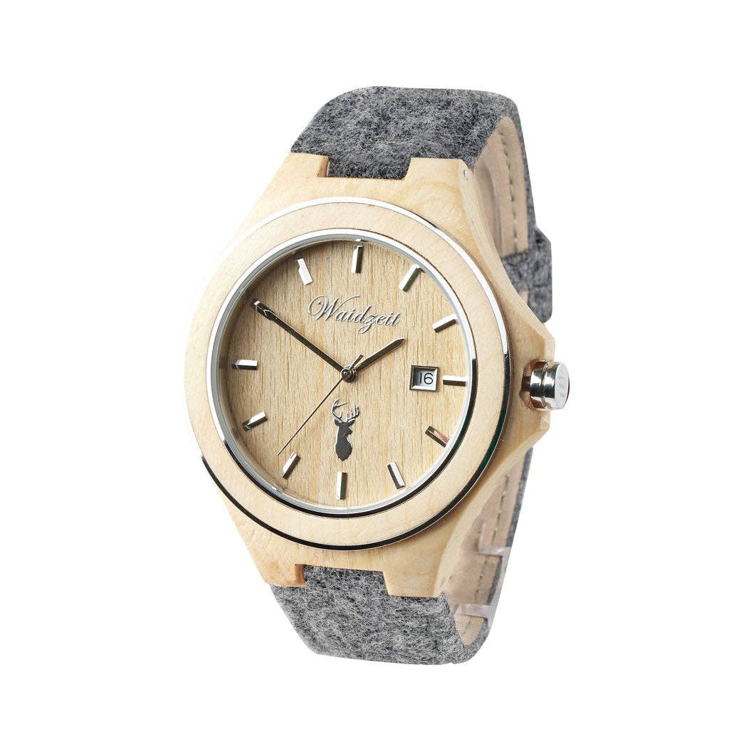 Avec Waidzeit, nous voulons partager l'esprit et le style de vie que nous offrent les Alpes d'Ennstal, en plein cœur de l'Autriche. C'est le lieu qui raconte notre histoire personnelle et qui nous inspire à concevoir des pièces uniques. C'est une histoire inspirée par les montagnes, les lacs et la beauté naturelle. Ce cadre fabuleux est le point de départ de nos magnifiques montres, lunettes, bijoux et accessoires fabriqués à partir de bois, de marbre et de mérinos locaux. Le caractère distinctif, le plaisir, la pleine conscience et la proximité avec la nature : chez Waidzeit, nous défendons tout cela.