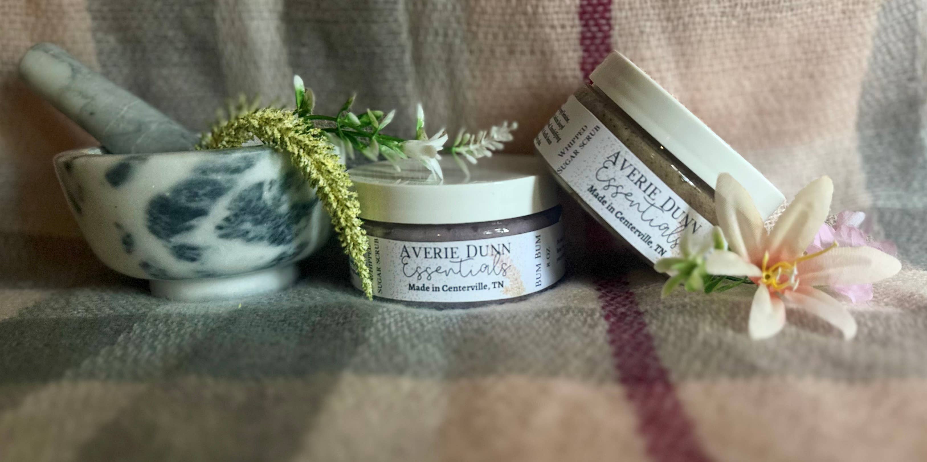 Sabrina Stellato est une formulatrice de soins de la peau et créatrice de produits faits main dans une belle petite ville, Centerville Tennessee. Dédiant la marque à sa fille, Averie Marie Dunn, elle espère aider les personnes avec tous types de peau, problèmes de cheveux et de peau. Ses produits sont sans cruauté et contiennent très peu d'ingrédients. Dans ce cas, moins c'est plus, le naturel est à la mode et une belle peau et de beaux cheveux sont d'une importance capitale !