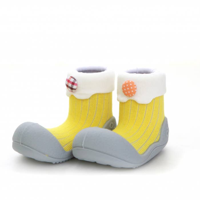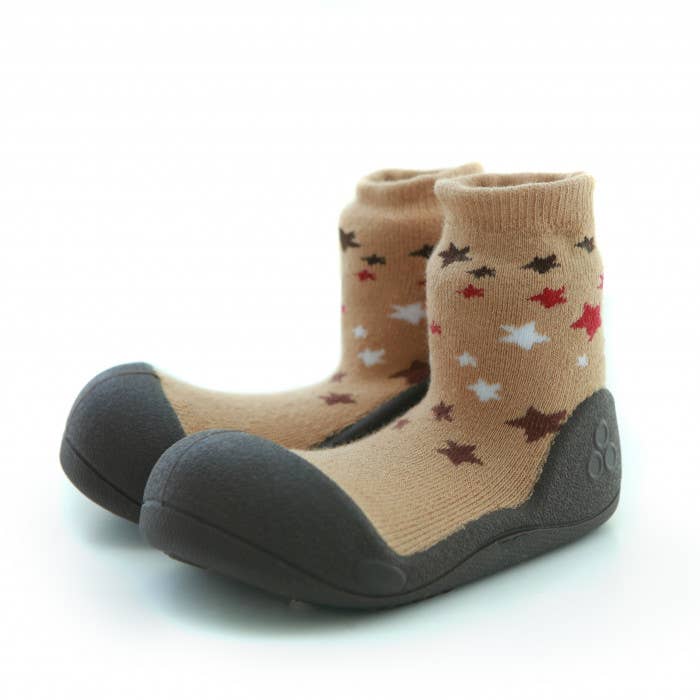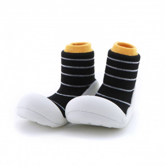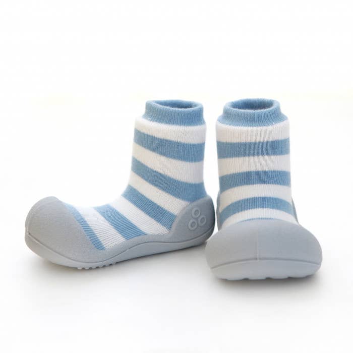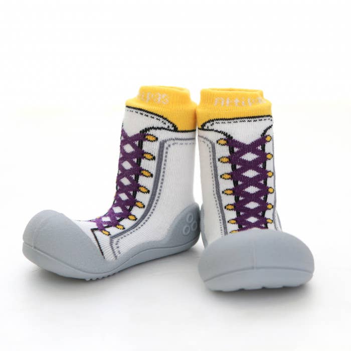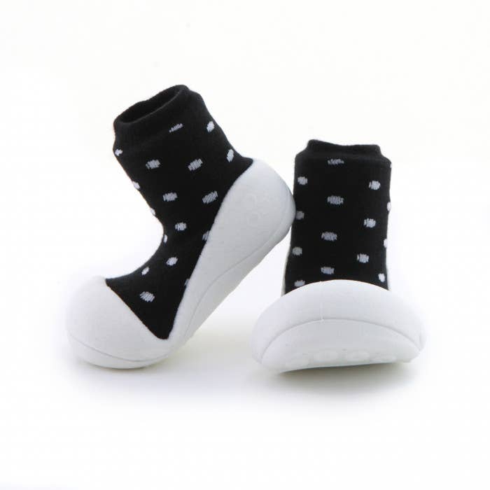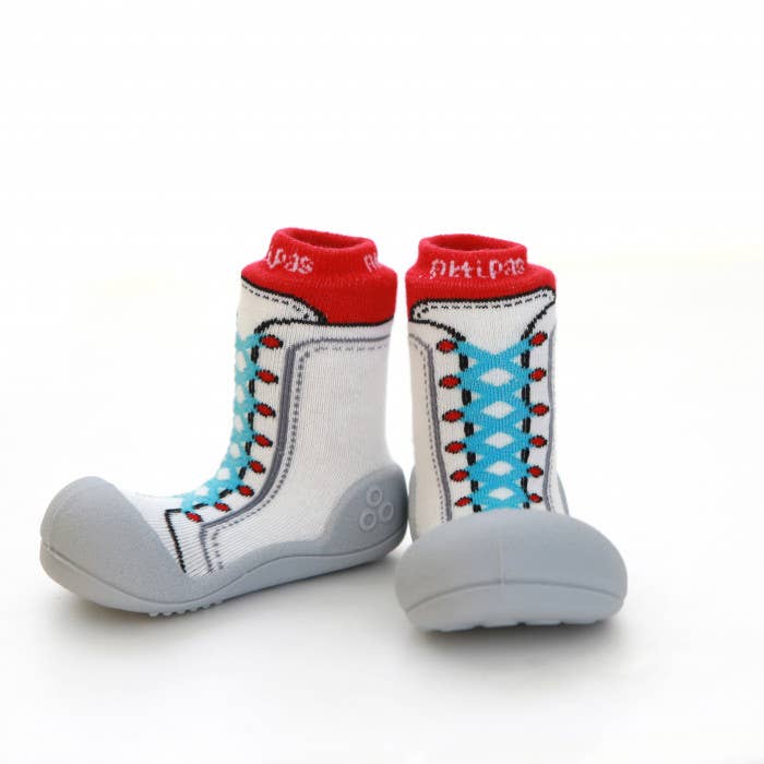 Attipas se traduit librement par « pas précieux », et c'est exactement ce que nous voulons que les bébés fassent lorsqu'ils enfilent une paire d'Attipas, font ces premiers pas précieux et partent courir ! Des études montrent que lorsque nos enfants apprennent à marcher, il est préférable d'être pieds nus le plus possible. Chez Attipas, nous avons suivi ces études et avons construit une chaussure qui permet un mouvement qui imite le fait d'être pieds nus, tout en protégeant chaque précieux cochon. Chez Attipas, nous nous efforçons également d'être avant-gardistes avec une gamme de couleurs, de motifs et de designs qui s'adaptent à toutes les tenues ou attitudes.