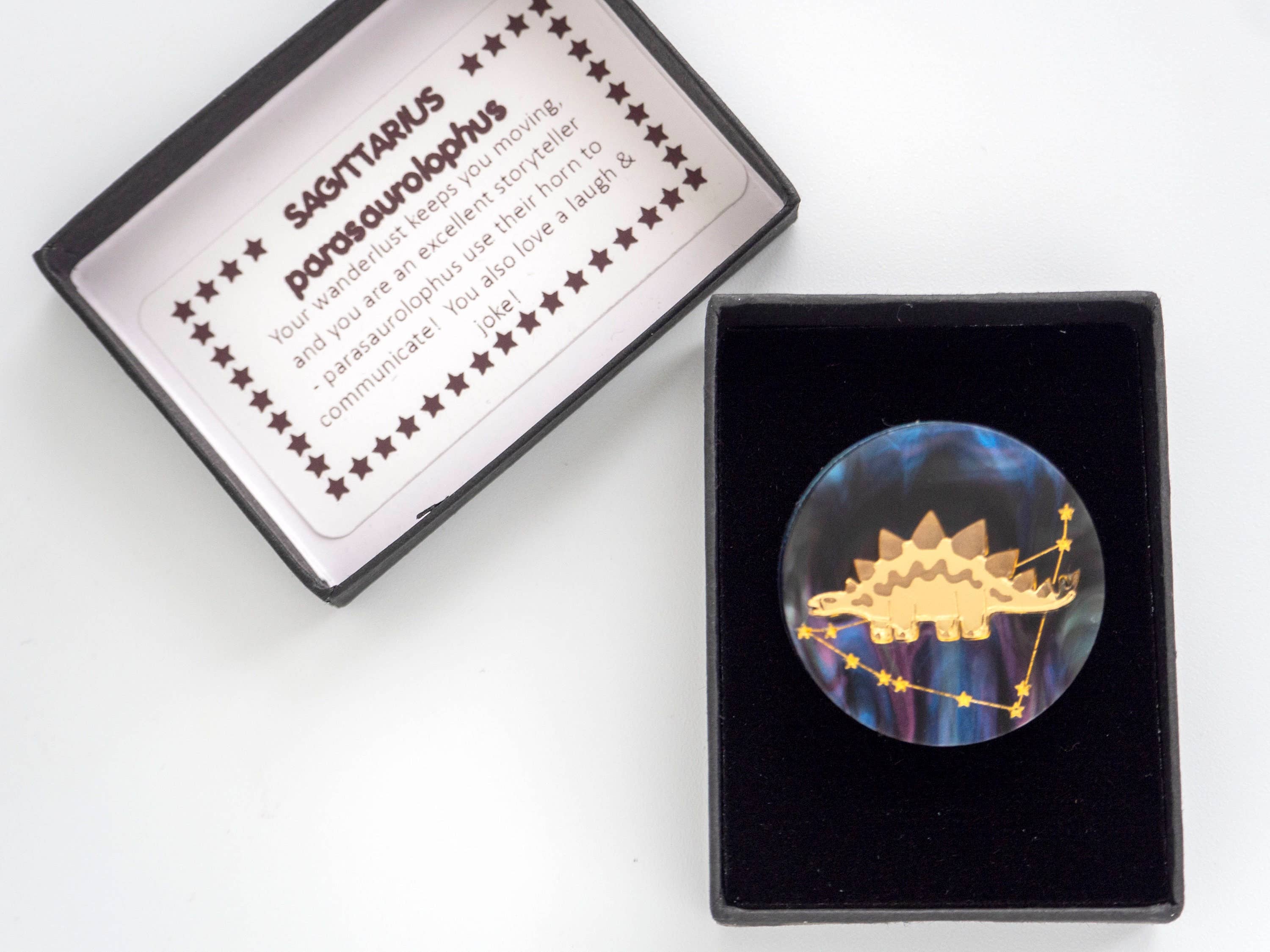 Au début, Jacques a commencé à fabriquer des miroirs pour enfants dans l'entreprise de découpe laser où il travaillait. Il y avait un brachiosaure brillant qui m'a plu, et j'ai suggéré qu'il aurait fière allure comme un collier GÉANT. J'étais tellement enthousiaste à ce sujet que Jacques en a fait le tout premier collier designosaur ! Je parle très vite, lorsque nous avons commencé à fabriquer des colliers de dinosaures, nous étions tous les deux très excités, et quand je suis excité, je parle encore plus vite ! Jacques et moi discutions de nouveaux modèles et j'ai essayé de dire « oui, dessinez un collier de dinosaure », dans ma hâte, cela est sorti en un seul mot, Jacques m'a regardé avec de grands yeux et nous savions que nous venions de trouver le nom designosaur. Depuis, Jacques et moi avons travaillé ensemble pour créer une large gamme de colliers de dinosaures et d'autres bijoux, accessoires, chaussettes et, plus récemment, articles ménagers découpés au laser ! Nous faisons tout ensemble et formons une excellente équipe. Nous avons tellement d'idées. La plupart du temps, nous ne parlons que de dinosaures et de plastique ! Cela nous fait sourire d'une oreille à l'autre lorsque vous aimez les dinosaures et nos designs - concevoir quelque chose de grand, de brillant et d'audacieux, c'est l'un de nos principaux objectifs. Pour toute question que nous aimerions avoir de votre part, RUGISSEMENT ! Karli et Jacques