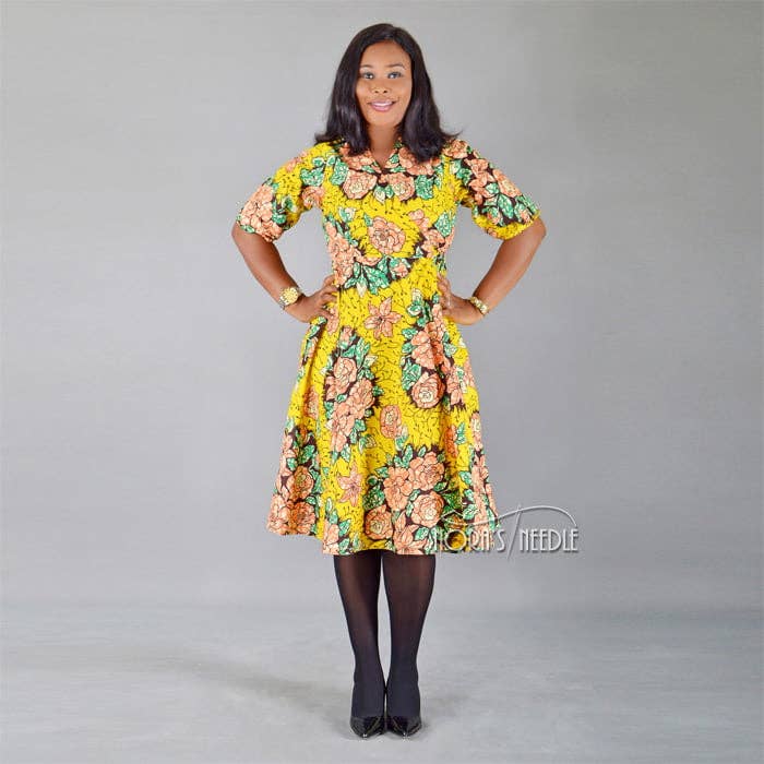 Je souris chaque fois que je me rappelle la motivation qui m'a poussé à lancer Nora's Needle. Quand je suis tombée enceinte de mon deuxième fils en 2015, je portais surtout des robes légères et, à l'époque, je ne pouvais pas porter beaucoup de mes robes tendance et chéries. Cependant, je les ai manqués et j'avais hâte de les bercer à nouveau. Au moment où j'ai accouché, bon nombre de ces robes tendance étaient devenues démodées et les nouvelles tendances les avaient dépassées — en seulement neuf mois ! Vous pouvez imaginer ce que cela a eu sur mon estime de moi. J'ai décidé que la meilleure façon de me sentir en confiance en tout temps était de porter des robes classiques mais élégantes qui ne se démodent jamais. Mais une grande partie du marché de l'habillement est dominée par les robes tendance et bon marché qui deviennent vite démodées, j'ai donc ressenti le besoin de créer mes robes. J'ai converti un espace de notre appartement de trois chambres en atelier de couture et j'ai commencé à confectionner des robes africaines pour moi et des amis proches, qui m'ont recommandé d'autres personnes.