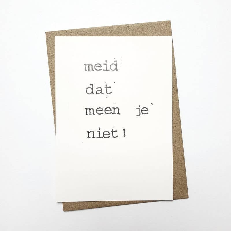 Mes cartes postales me ressemblent ; un peu têtues et parfois en équilibre sur le fil, mais toujours avec un clin d'œil. La norme dans l'industrie de la carte est une carte double luxueuse, du papier exotique et des textes ou illustrations doux. Je choisis une carte postale simple : un design épuré avec sa propre déclaration. Des textes avec du caractère, estampillés d'humour. L'humour met les choses en perspective et l'humour connecte. Mes textes sont accrocheurs au premier coup d'œil et les cartes sont abordables. Cela rend amusant pour tout le monde d'envoyer à nouveau du vrai courrier. Tout ce que je fais, je le fais avec humour et amour. L'humour comme lubrifiant social est incroyablement important dans ce monde. Par exemple, si quelqu'un achète une carte avec le texte : 'Les mères ont toujours raison', j'en profite intensément, car je sais qu'une mère recevra bientôt cette carte de son enfant. Je trouve formidable d'avoir pu contribuer à cela. Entendre les gens rire est si contagieux. Plus les gens rient, plus le monde sera heureux. Voulez-vous répandre des rires avec moi ?