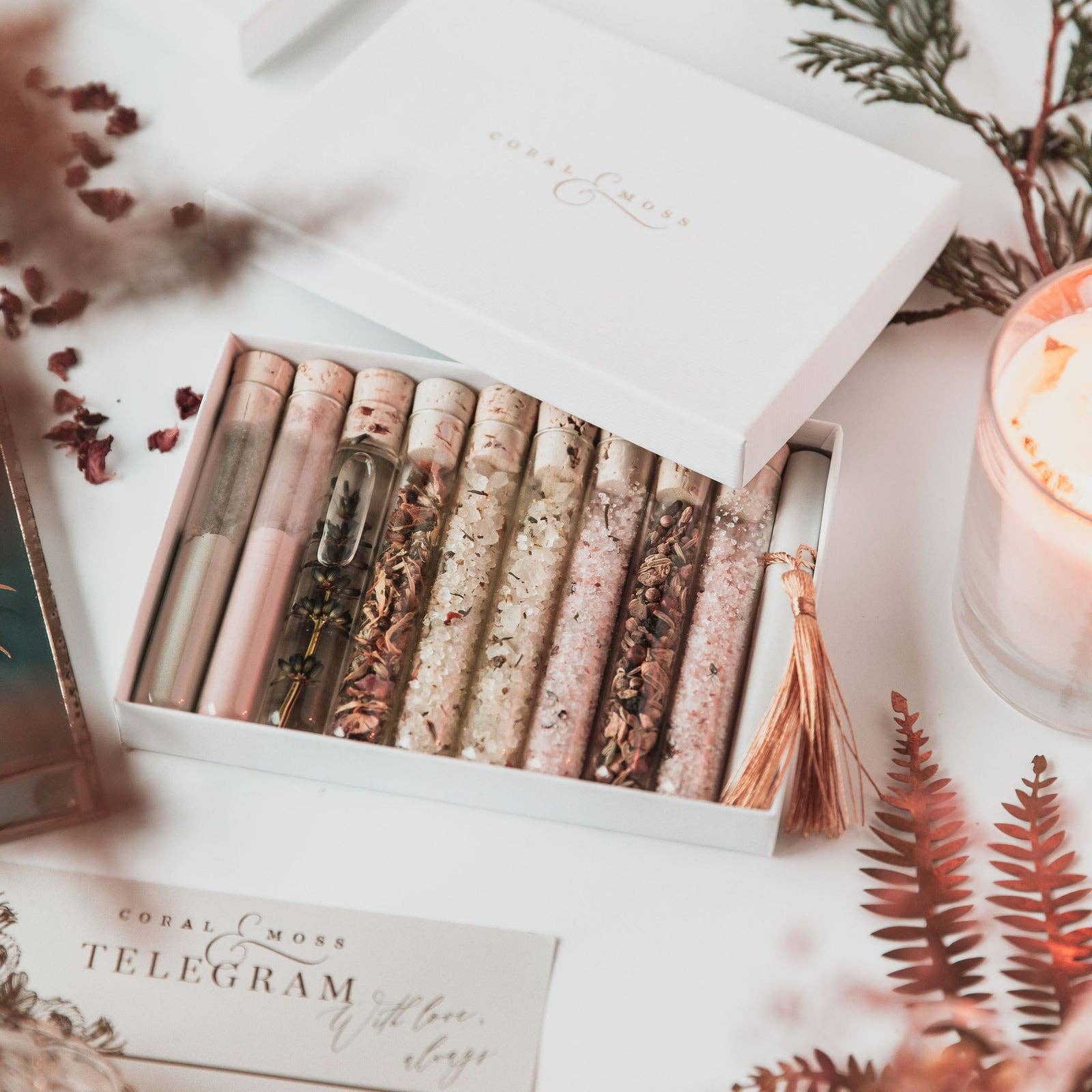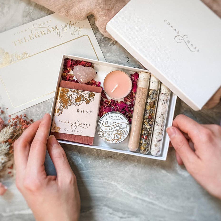 « Coral & Moss » est la brise marine salée sur vos lèvres ; le murmure des arbres dans une forêt enchantée ; une poignée de secrets transmis à travers vos anciens ; la paix profonde trouvée lors d'une soirée chaude et lourde parfumée ; les profondeurs éclatantes du feu de joie. Évoquant un fort sens des Cornouailles, Libby (fondatrice) invente par curiosité de son environnement. Des matières premières et naturelles magnifiquement issues de l'apothicaire de beauté, des bougies et des bijoux sont des collections botaniques et cristallines. Béni de son don d'empathie, « Coral & Moss » a un battement de cœur, un véritable lien avec la Terre Mère. Un moment agréable et sans effort partagé avec un être cher est une expérience tangible à capturer et à chérir - à travers nos cadeaux et nos rituels, nous aidons à mettre en scène la vraie magie.