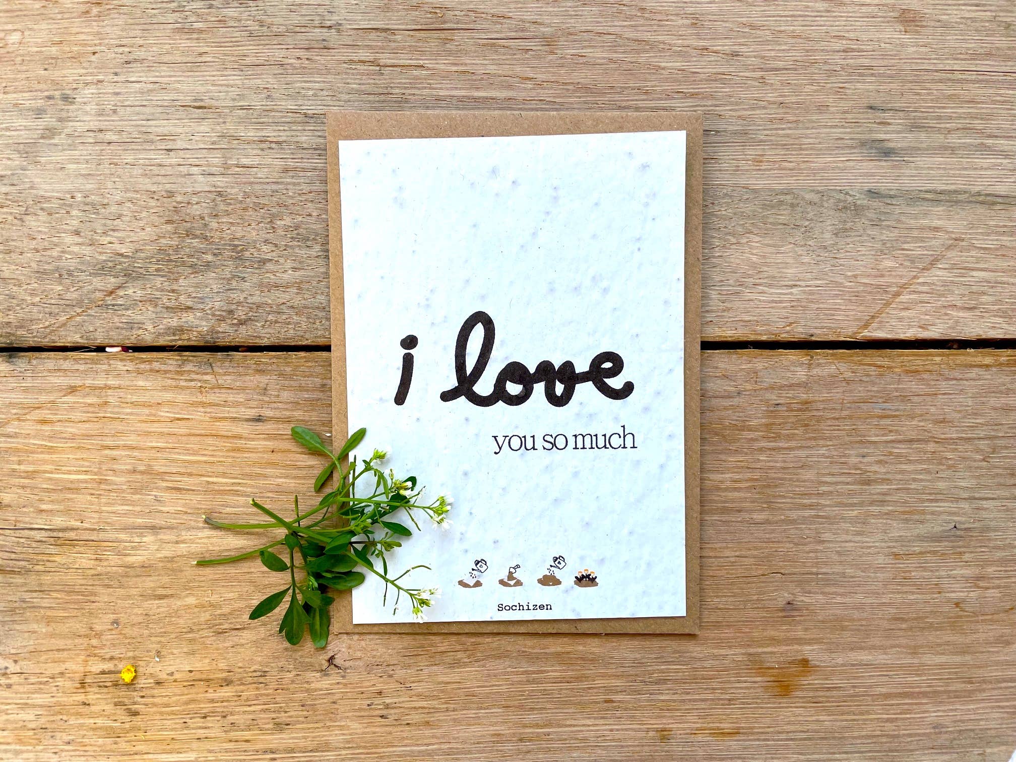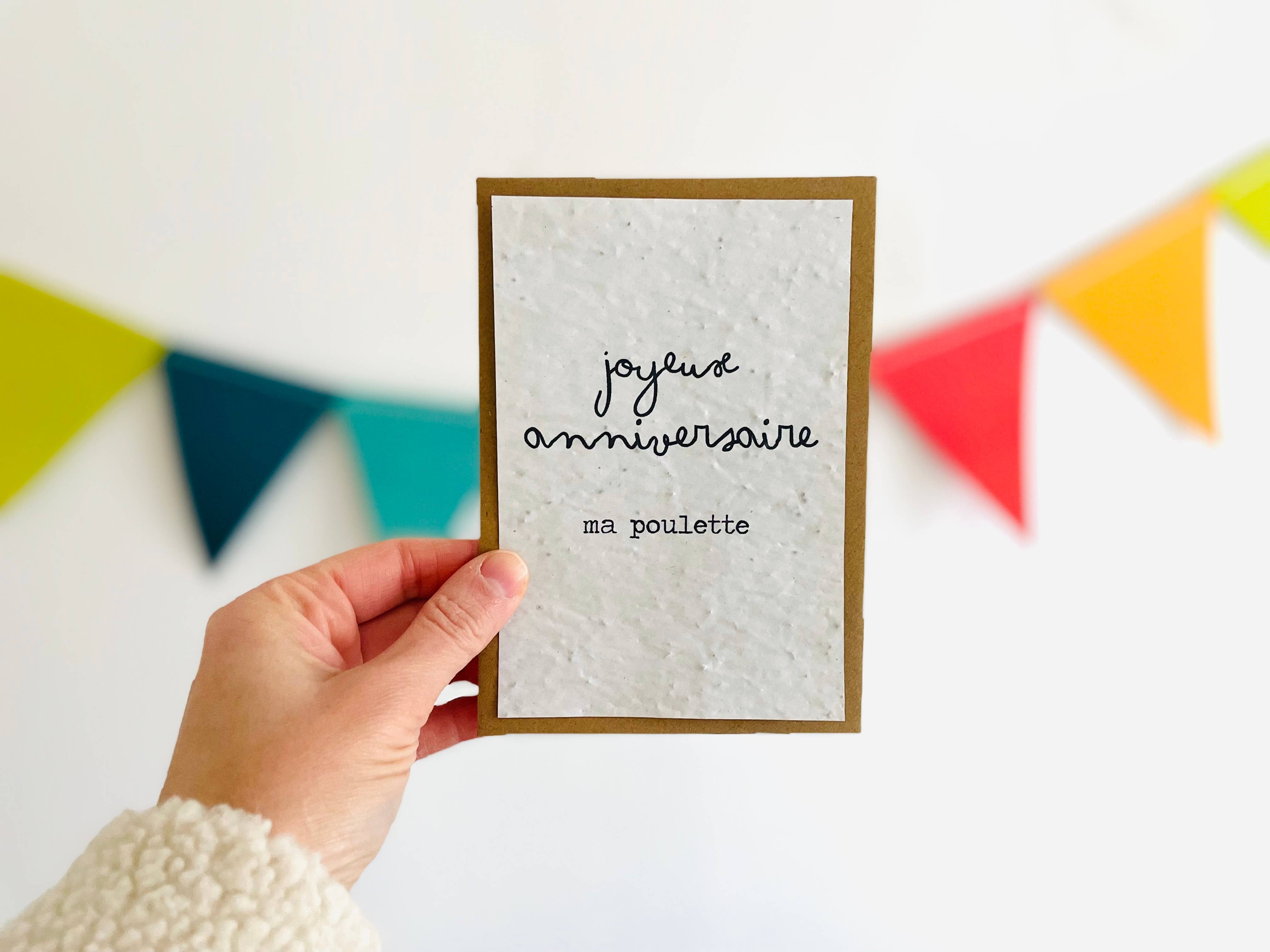 "Faites fleurir vos messages 🌱💌" Envoyez vos pensées, souhaits et mots doux dans une carte pas comme les autres ! Chez sochizen, on sème des sourires ET des fleurs : nos cartes à planter transforment vos messages en une explosion de verdure. Anniversaires, déclarations d'amour, félicitations ou simples "coucou" ? Nos cartes s'adaptent à toutes les occasions festives, et elles font bien plus que rester coincées sur une étagère : elles deviennent des plantes ! ✨ Pourquoi c’est génial ? 🌍 Zéro déchet, 100 % nature : Fabriquées en papier ensemencé biodégradable, nos cartes poussent après usage. 🌸 Cadeau deux-en-un : Vous offrez une jolie pensée ET un bouquet potentiel. 🐝 Un geste pour la planète : Nos cartes fleurissent pour nourrir les abeilles et colorer les jardins. Alors, dites adieu aux cartes tristes qui finissent à la poubelle, et bonjour à une correspondance écoresponsable et joyeuse. Chez nous, chaque mot planté peut changer le monde... ou au moins embellir un pot de fleurs ! 🌱💕