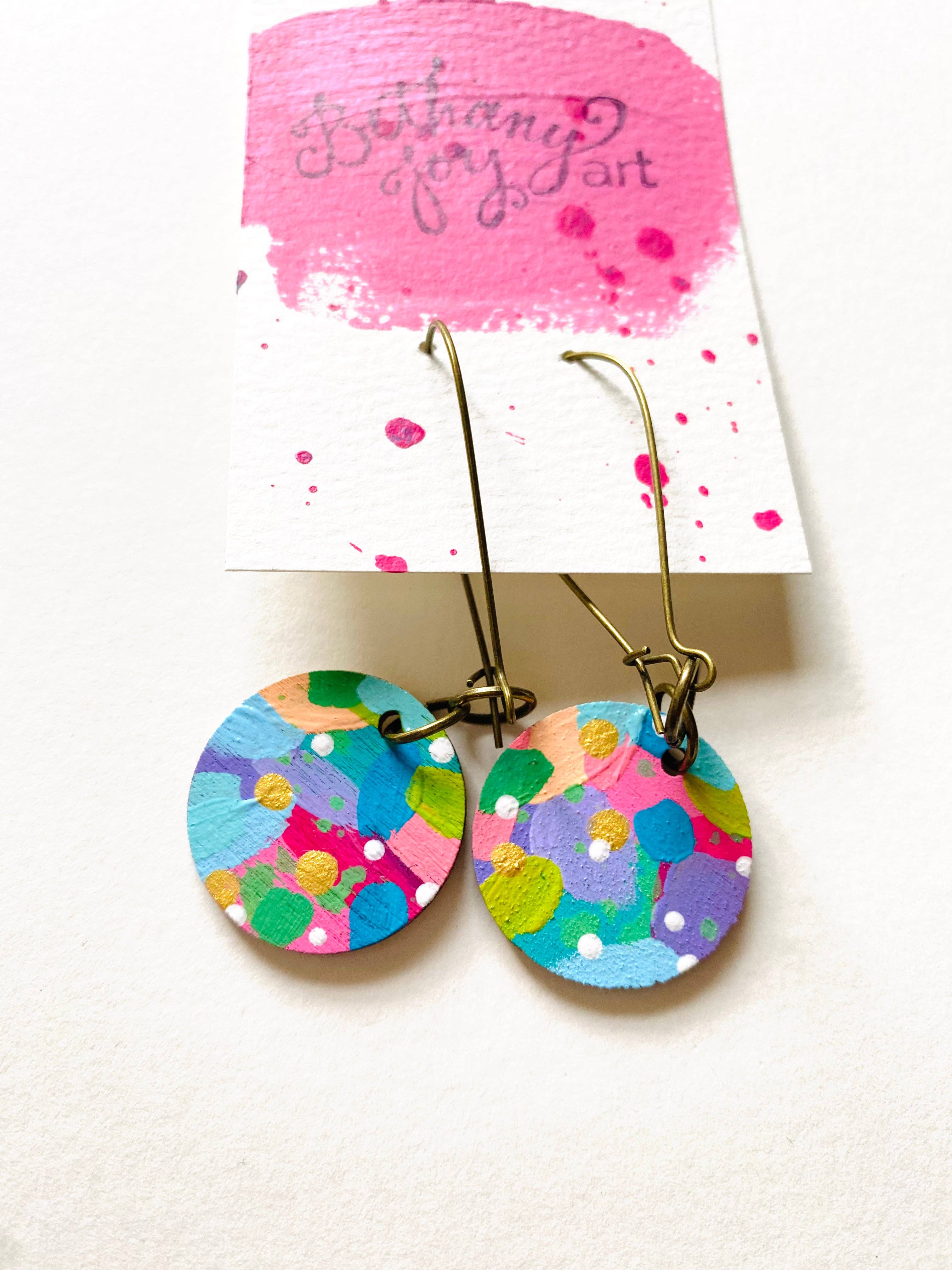 Je suis une peintre abstraite de techniques mixtes, axée sur la diffusion de la joie à travers l'art. J'exprime ma joie en peignant des résumés vibrants, des fleurs et des citations inspirantes. Je crée principalement avec de la peinture acrylique, mais j'adore expérimenter et ajouter des pastels, des aquarelles, des huiles et d'autres matériaux à mes peintures pour ajouter des textures différentes. Le processus de peinture est très ludique et spontané pour moi. Mes peintures impliquent beaucoup de superpositions jusqu'à ce que je trouve la pièce harmonieuse et pleine de joie. Mon mari, mes chiens et moi vivons à Western, en Caroline du Nord, où je travaille depuis mon home studio, créant des peintures originales, des tirages d'art, des cartes de vœux, des autocollants en vinyle, des boucles d'oreilles, des ornements, et plus encore !