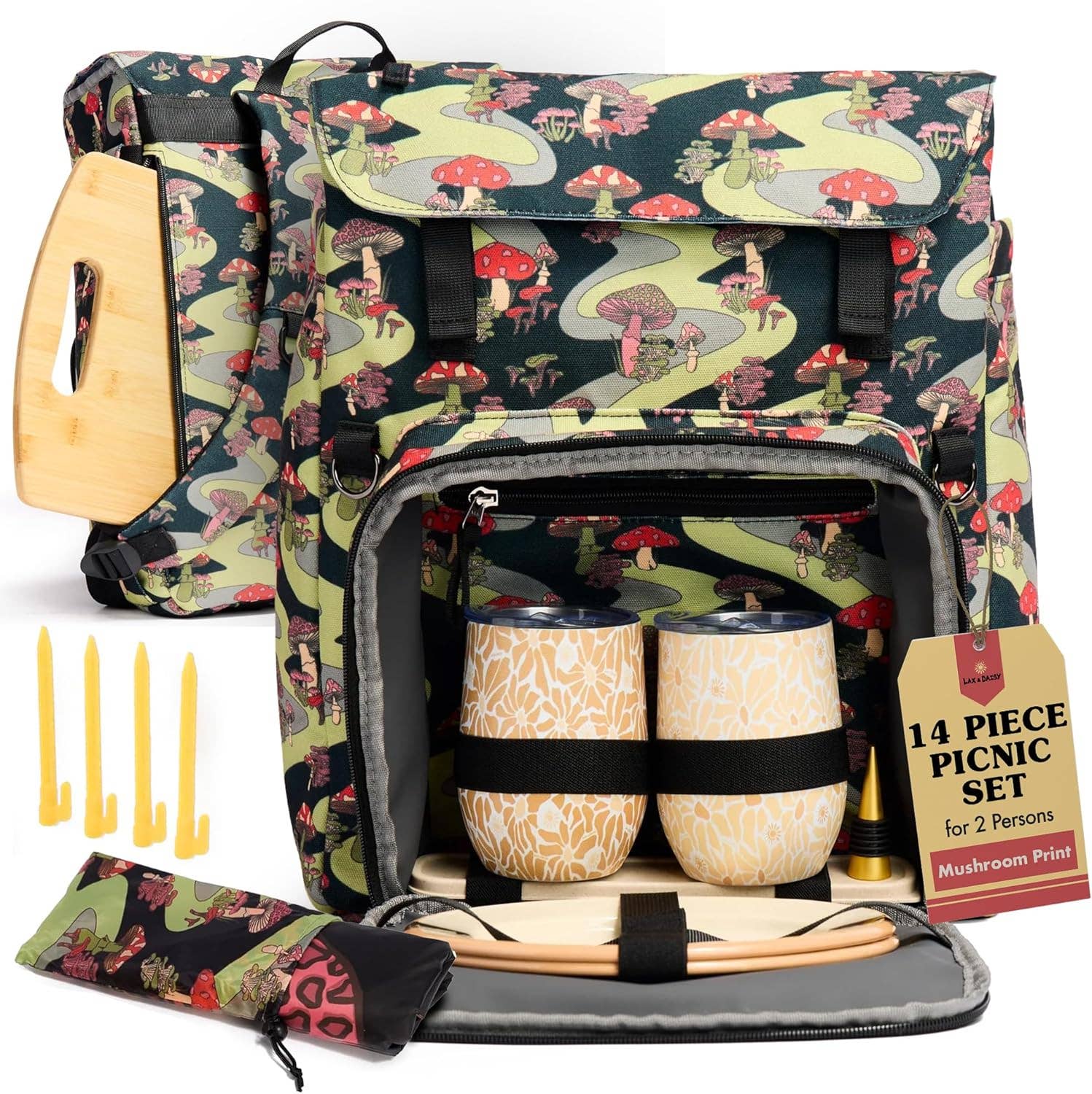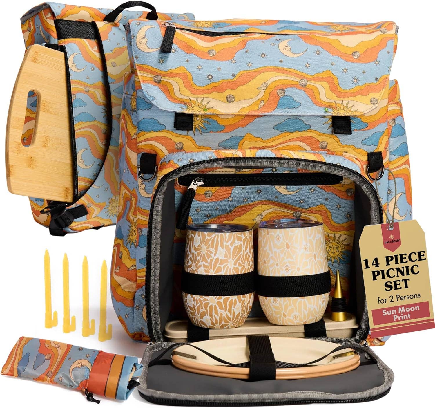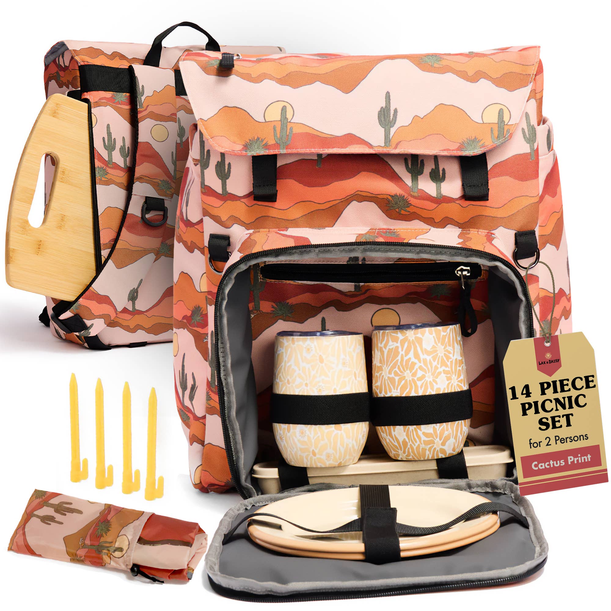 Depuis plus d'une décennie, Nikki est la pro ultime du pique-nique, mais elle ne trouvait pas de set de pique-nique qui correspondait à son style. Voici le Luxe Picnic Backpack de Lax & Daisy, un sac à dos de pique-nique et glacière de 14 pièces – conçu pour l'innovation, la fonctionnalité et le style, né de l'amour de Nikki pour chasser les couchers de soleil et profiter de la magie de la nature. En tant que marque détenue par des femmes, Lax & Daisy a pour mission de répandre le soleil et de rendre les aventures en plein air faciles pour tout le monde. Fièrement présenté dans National Geographic et récompensé par Food & Beverage Magazine, notre sac à dos de pique-nique pour 2 est l'incarnation de la fonctionnalité élégante. D'une planche à découper en bambou pour créer des plateaux de fromages dignes d'Instagram à des gobelets en acier inoxydable, des couverts dorés, des assiettes de camping en émail, et même un emplacement pour votre tapis de yoga – nous avons pensé à tous les détails.