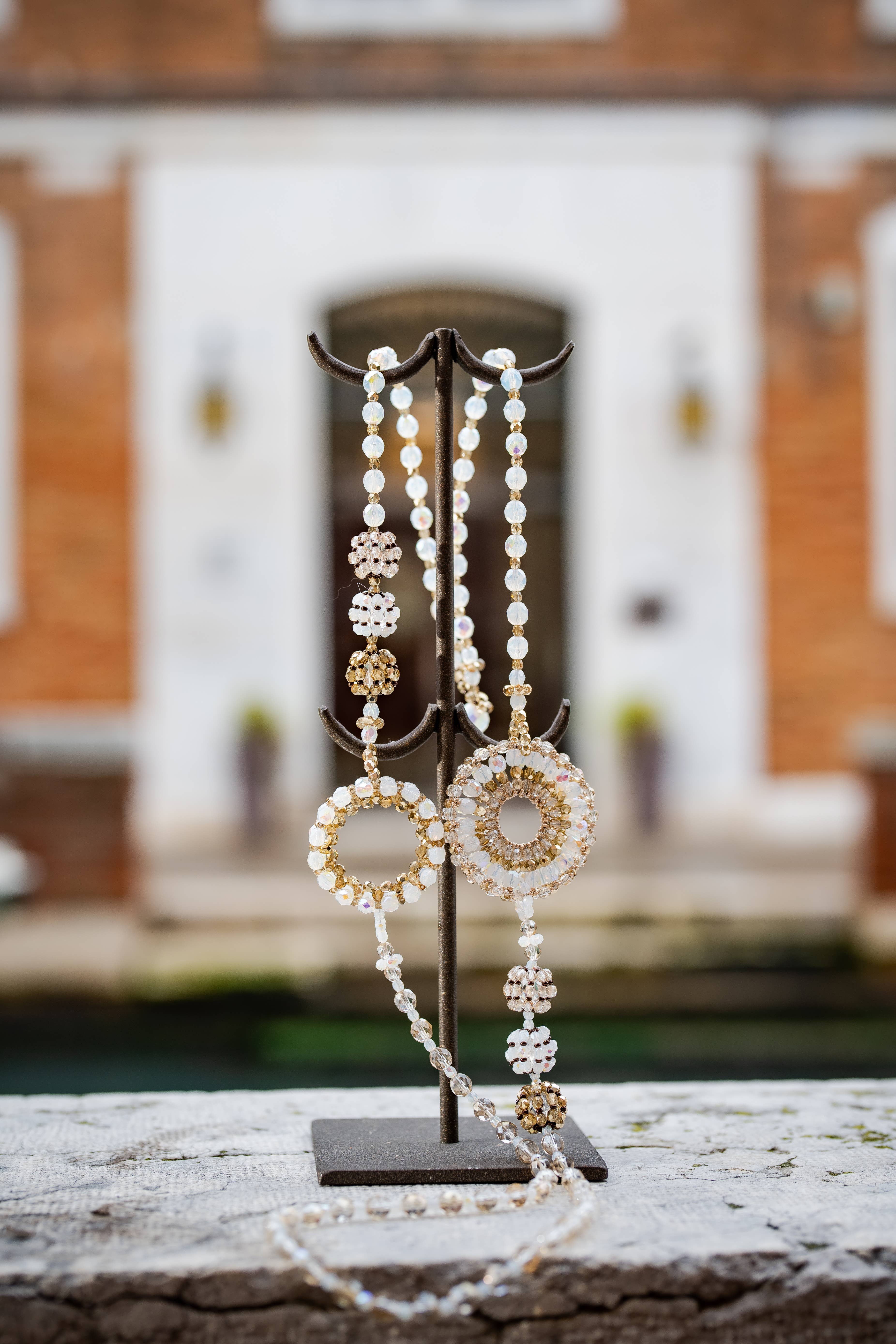 CORSOLA MAINARDIS Artiste vénitienne, elle est née et a grandi au cœur de la lagune. Depuis plus de vingt ans, elle conçoit et fabrique des bijoux en cristaux de Murano et des lunettes qui surprennent et satisfont le goût raffiné des jeunes femmes et des femmes élégantes. Le soin apporté à l'association des couleurs, le choix de matières précieuses et, entre les mains, l'expérience et l'art d'un métier affiné au fil du temps sont l'âme des créations qui portent sa signature. Les collections proposées par Orsola vont des accessoires majestueux, conçus et développés avec un savoir-faire minutieux, à des éléments plus essentiels et plus légers. Chaque pièce incarne dans un style unique l'inspiration de l'artiste toujours au fait des tendances en vogue dans le monde de la mode. La recherche de solutions artisanales est en constante évolution et l'expérimentation continue prend forme à travers des échantillons et des prototypes. La patience et la ténacité mènent le processus de création de l'artiste à des résultats de qualité supérieure dans le cadre de la fabrication de haute qualité du Made in Italy.