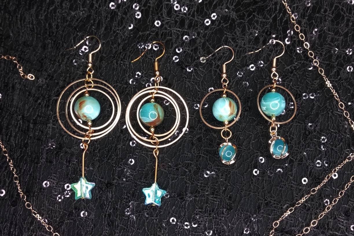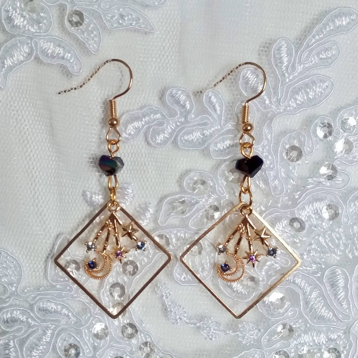 Je partage mon amour pour les articles scintillants sur le thème céleste qui conviennent aux affaires quotidiennes et aux occasions formelles. Toutes les boucles d'oreilles sont livrées avec des crochets hypoallergéniques et sont conçues et fabriquées par mes soins !