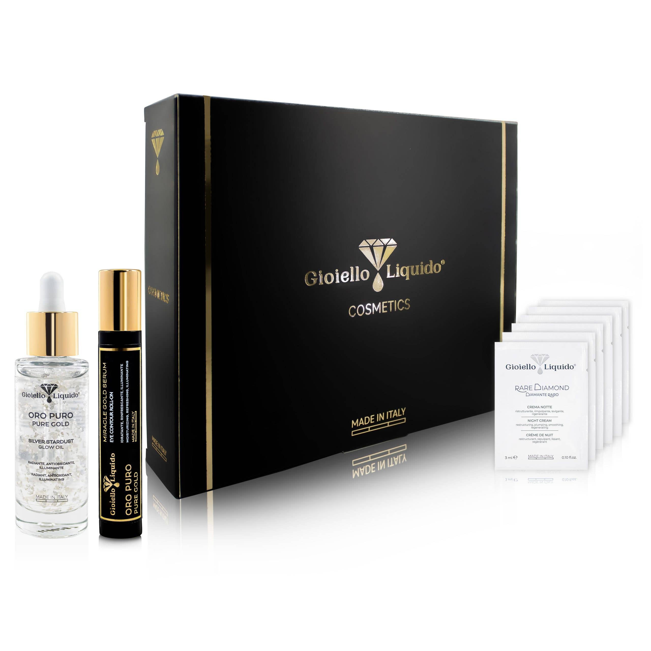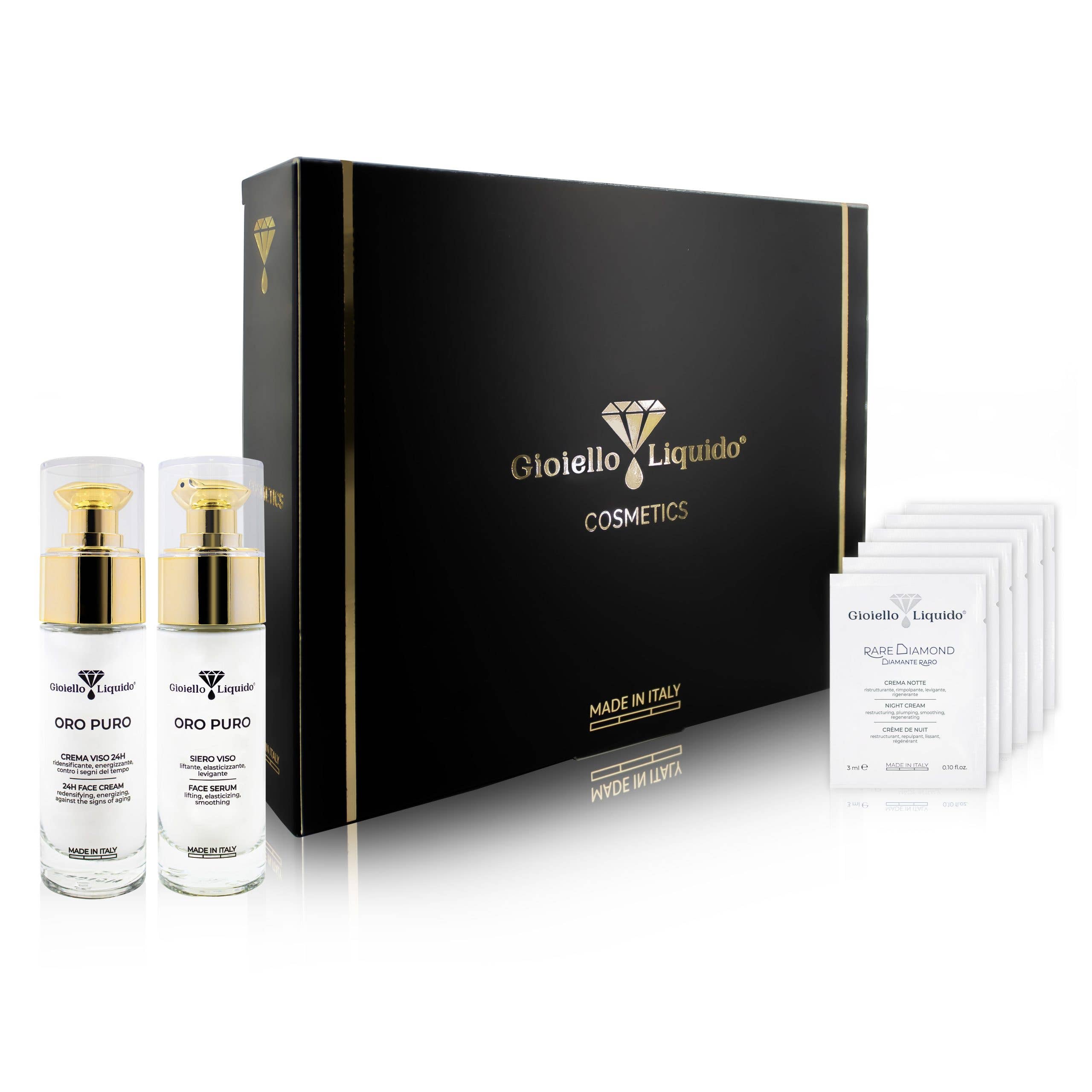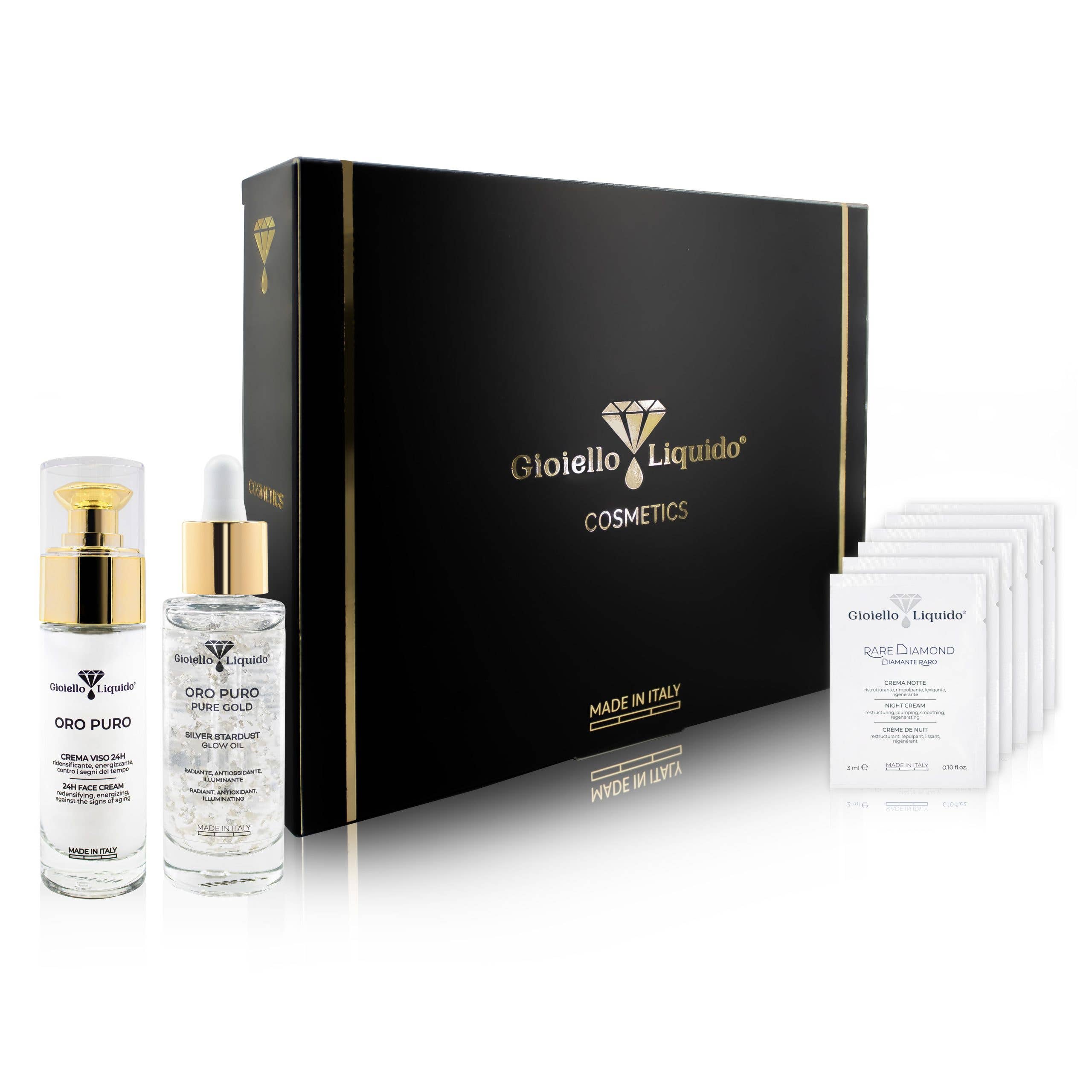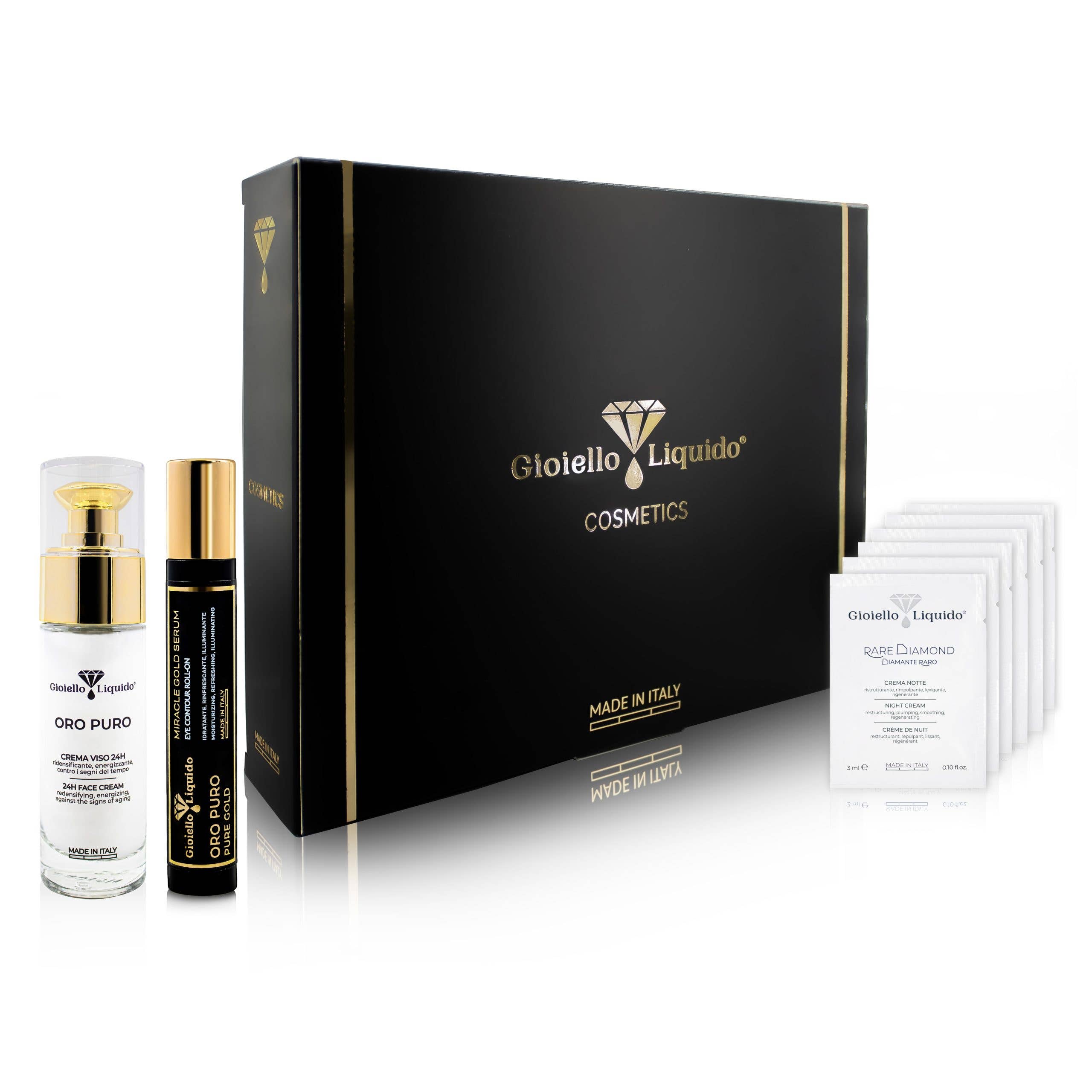 NOTRE PHILOSOPHIE Notre histoire : entre bijoux uniques et beauté pure... De la rencontre entre des ingrédients précieux riches et somptueux tels que l'or, les pierres précieuses, l'argent et le platine, avec des matières premières naturelles, des minéraux et des formulations cosmétiques de dernière génération, GIOIELLO est né LIQUID. Avec la combinaison de « Cosmétiques » et de « Bijoux », Gioiello Liquid, il interprète le désir de chaque individu de maximiser son unicité, son charme et sa personnalité, à la fois par le soin de la santé de la peau, en préservant la beauté génétique de chaque personne, à la fois par la beauté comprise comme un décorum destiné à améliorer l'inégalabilité de chaque individu. Ce n'est pas un hasard si l'origine du terme cosmétique « kósmesis » signifie précisément l'art de commander et d'orner le corps. En fait, depuis l'Antiquité, les femmes et les hommes ont essayé d'orner leur corps à la fois pour des raisons esthétiques qui, pour des raisons aussi liées au bien-être psycho-physique.