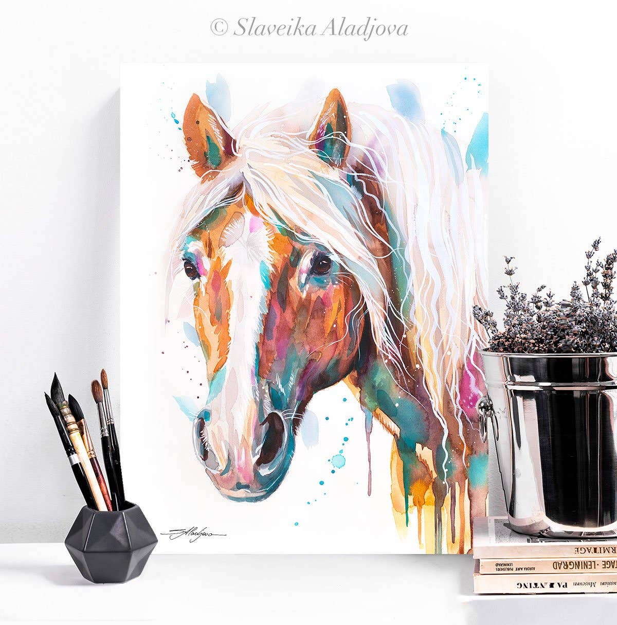 Je m'appelle Slaveika Aladjova. Je suis une aquarelliste bien connue pour mes représentations colorées d'animaux. Je suis née et j'ai grandi en Bulgarie et je suis passionnée par l'art depuis mon enfance. Le dessin et la peinture font partie de ma vie depuis aussi longtemps que je me souvienne. Mes peintures se caractérisent par des coups de pinceau audacieux, une utilisation magistrale de la couleur et ma capacité à capturer les caractéristiques et la personnalité uniques de chaque animal. Je me spécialise dans l'aquarelle, un médium que je trouve particulièrement adapté pour capturer la beauté des animaux. Je passe beaucoup de temps à observer et à étudier les animaux que je peins. Je suis particulièrement attiré par la majesté des créatures marines. Mes peintures de chiens et de chats sont tout aussi captivantes, et je trouve également de la beauté dans les aspects les plus banals de la nature. Au fil des ans, mon art a acquis un large public et mes peintures ont été exposées dans des galeries et des collections privées du monde entier.