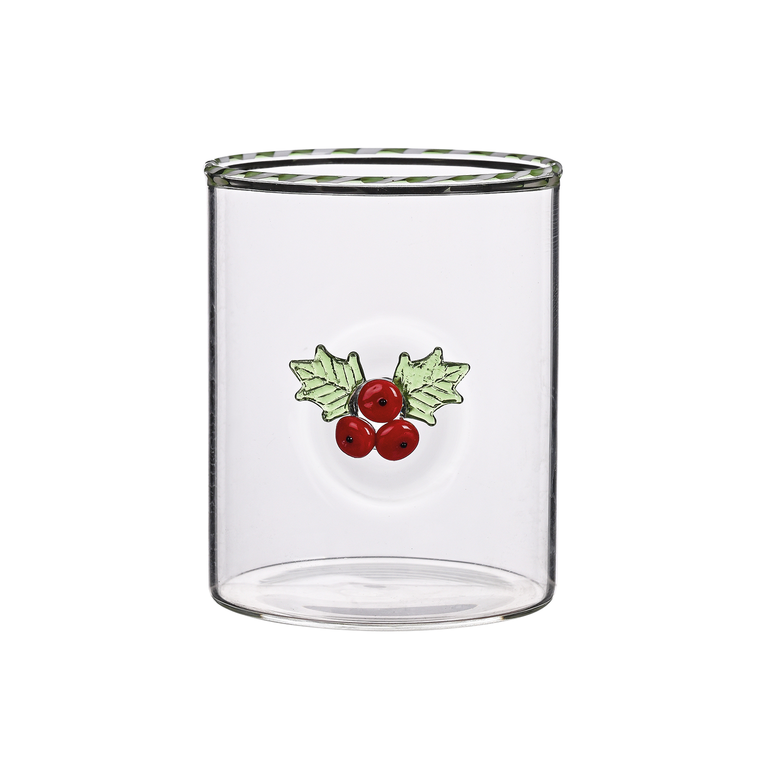 Verre gobelet 3D houx bordure bicolore D8 H10cm